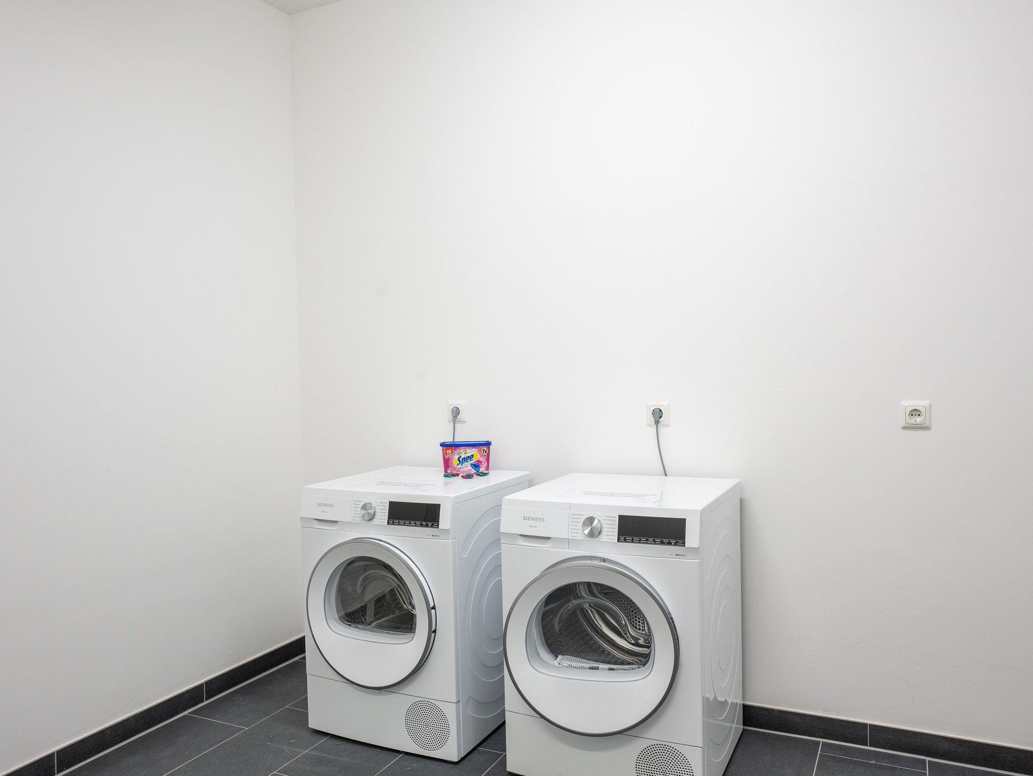 Im Souterrain stehen allen Gästen des Hauses zwei Waschmaschinen und zwei Trockner zur freien Verfügung.