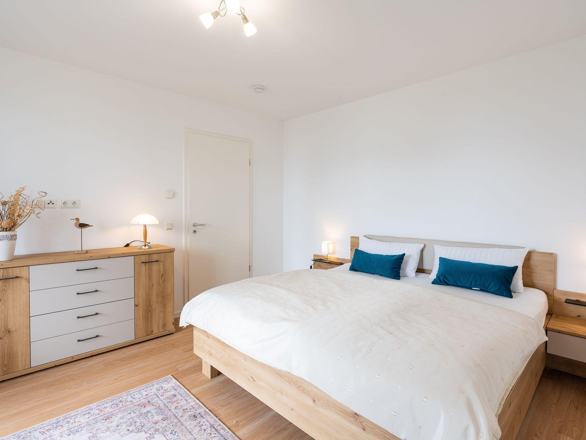 Dieses großzügige Ferienapartment befindet sich in der ersten Etage (Aufzug vorhanden) des im Jahre 2022 erbauten Gebäudes Nummer 5 und weist viele behindertenfreundliche Merkmale auf.