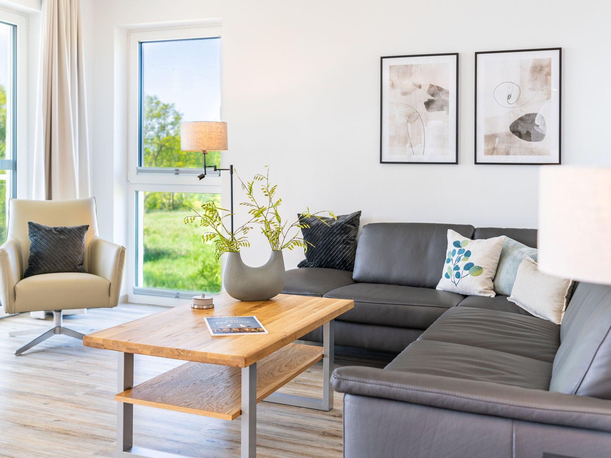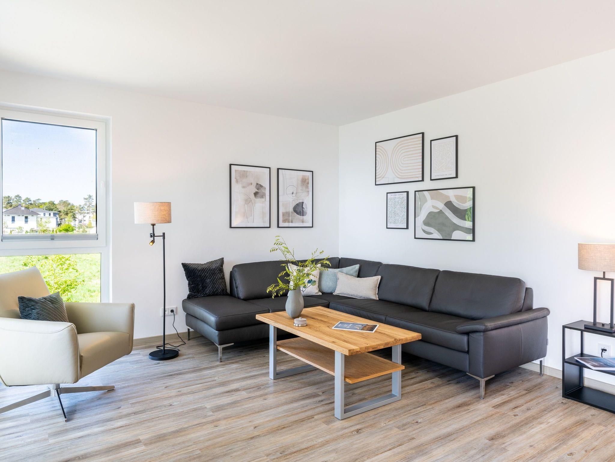 Diese im Jahr 2024 fertiggestellte Ferienwohnung verfügt über eine Wohnfläche von 115 m² und befindet sich im Haus 8, das etwa 400 Meter von den anderen „Oase am Haff“-Häusern entfernt auf einem separaten Grundstück in gleicher Südlage liegt.