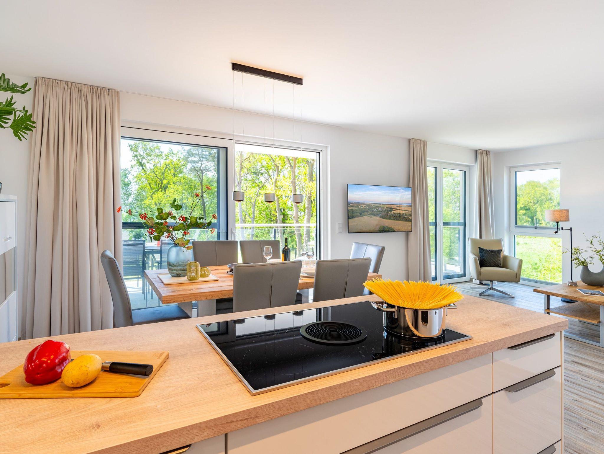 Das Induktionskochfeld mit Bora-Abzug ermöglicht Ihnen beim Kochen einen ungestörten Blick auf das Wasser ? einfach fantastisch!