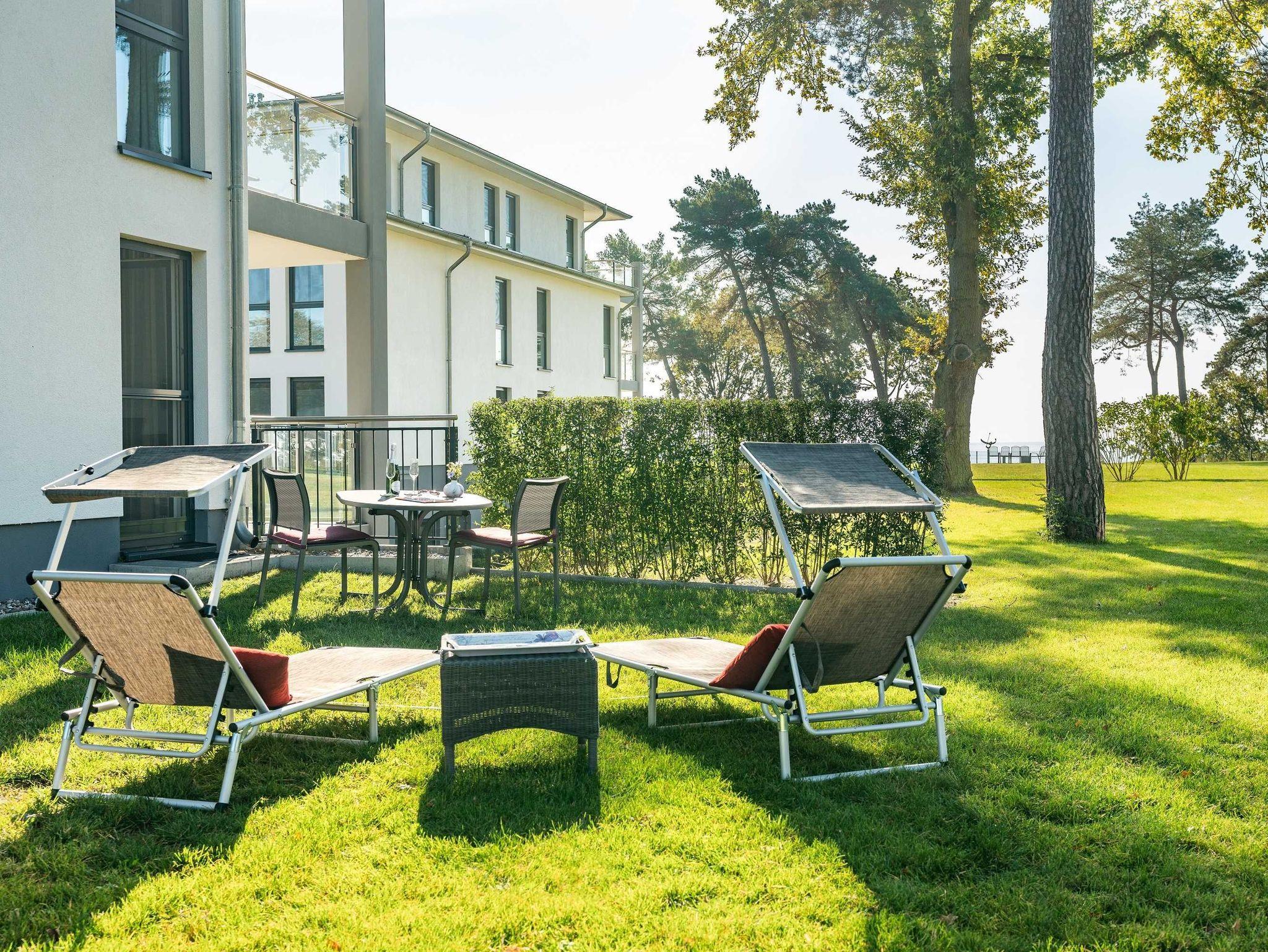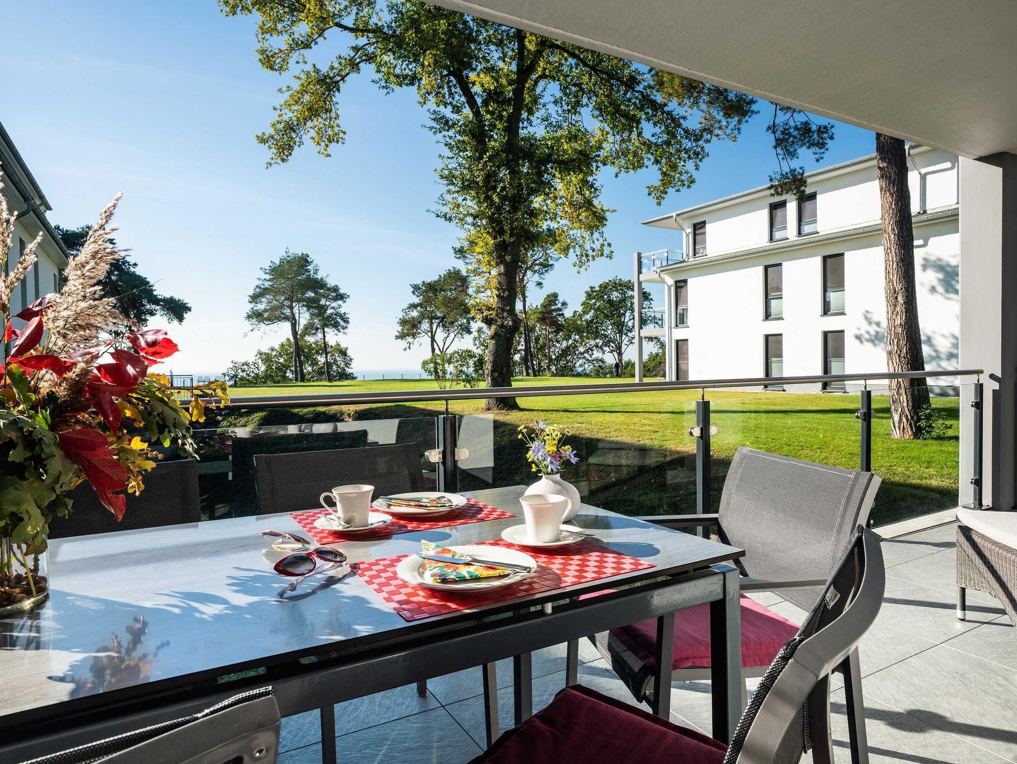 Alle Terrassenwohnungen und Appartements sind mit viel Liebe zum Detail in hochwertiger Ausstattung eingerichtet. Von großen Rasenflächen und ebenen Gehwegen umgeben, stehen unsere Ferienhäuser auf die Haffküste ausgerichtet und auf einer weitflächigen Außenanlage zueinander. Unsere Haffterrassen laden mit Sitzgelegenheiten an der Steilküste zum Entspannen bei einem Glas Wein ein.