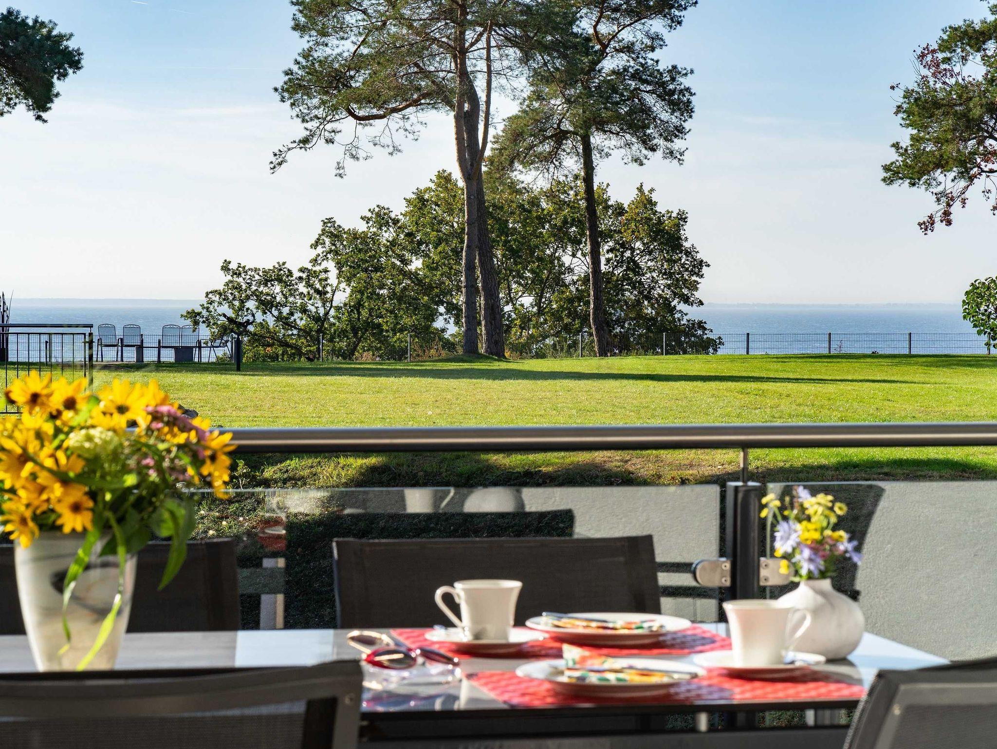 Unsere Ferienwohnanlage bietet von großen Sonnenterrassen ein traumhaftes Panorama auf das direkt vor uns gelegene Stettiner Haff, das in seiner Weite größer als der Bodensee ist. Der fantastische Blick auf das funkelnde Meer wird Sie verzaubern.