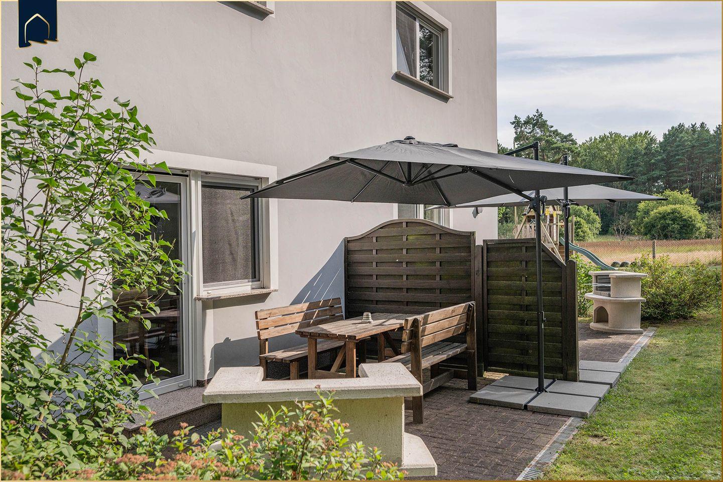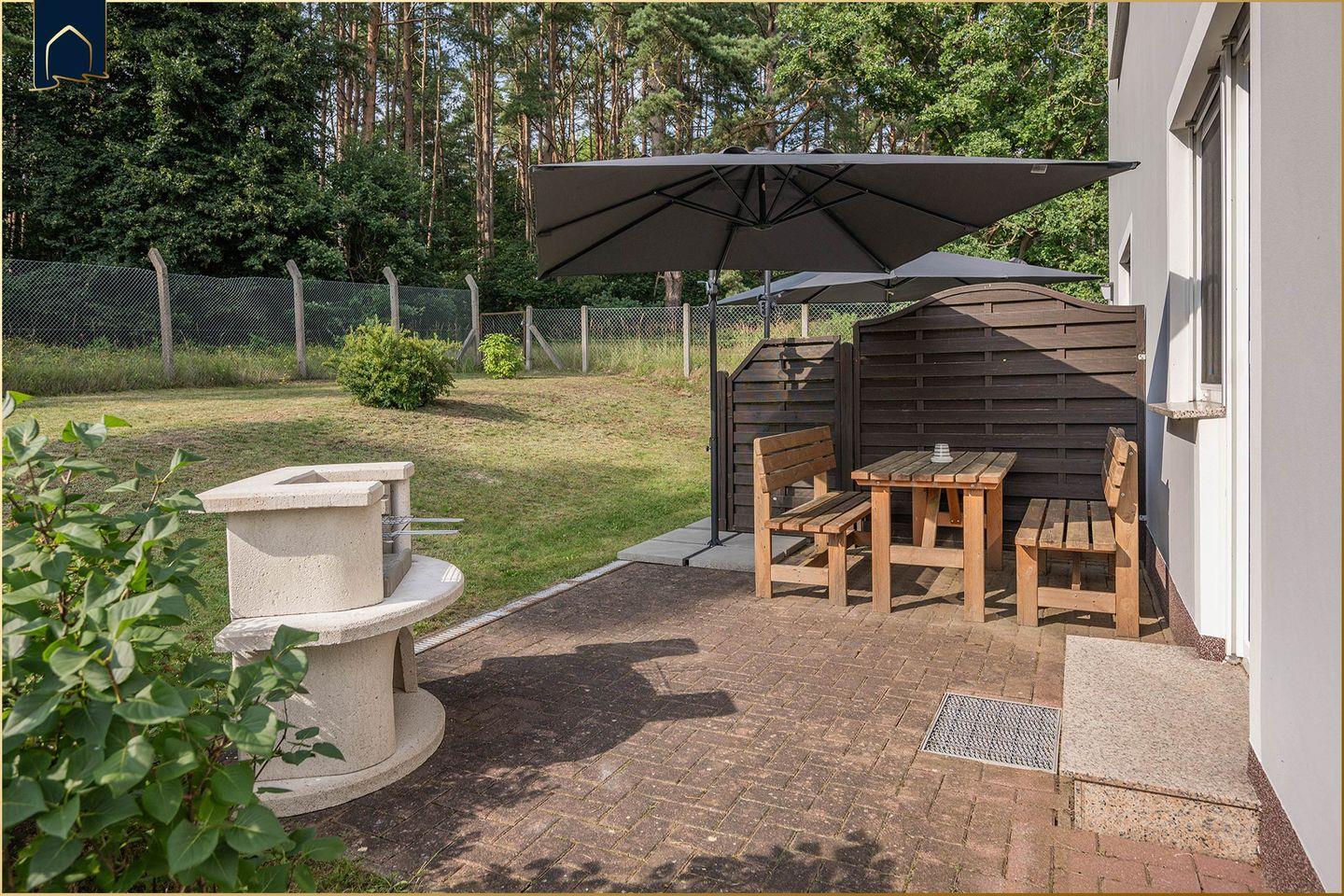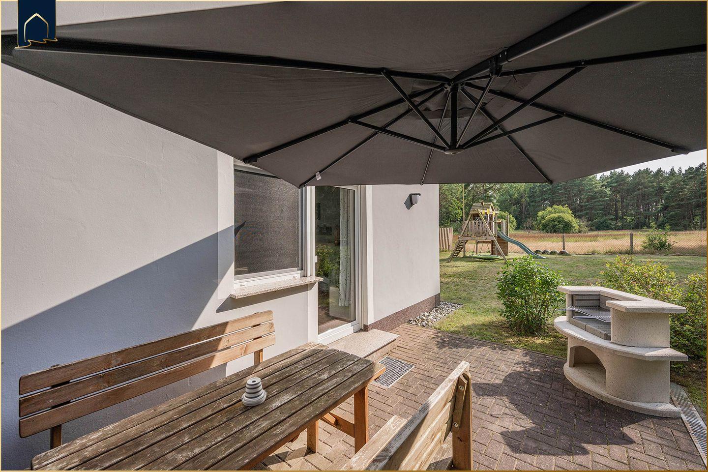 Das abgeschlossene Grundstück mit großem Garten, Terrasse, Gartenmöbeln, Sonnenschirm und Grill lädt zum Verweilen ein. Kinder können sich auf der Liegewiese oder dem kleinen Spielbereich austoben, während sich Erwachsene an der Feuerstelle oder in der privaten Sauna entspannen. Die Unterkunft ist haustierfreundlich, sodass auch Ihr Vierbeiner willkommen ist. Fliegengitter an den Fenstern und Sichtschutz sorgen zusätzlich für Komfort. Ein privater Carport steht für Ihr Auto zur Verfügung, sodass Sie auch abgelegene Ausflugsziele bequem erreichen können.