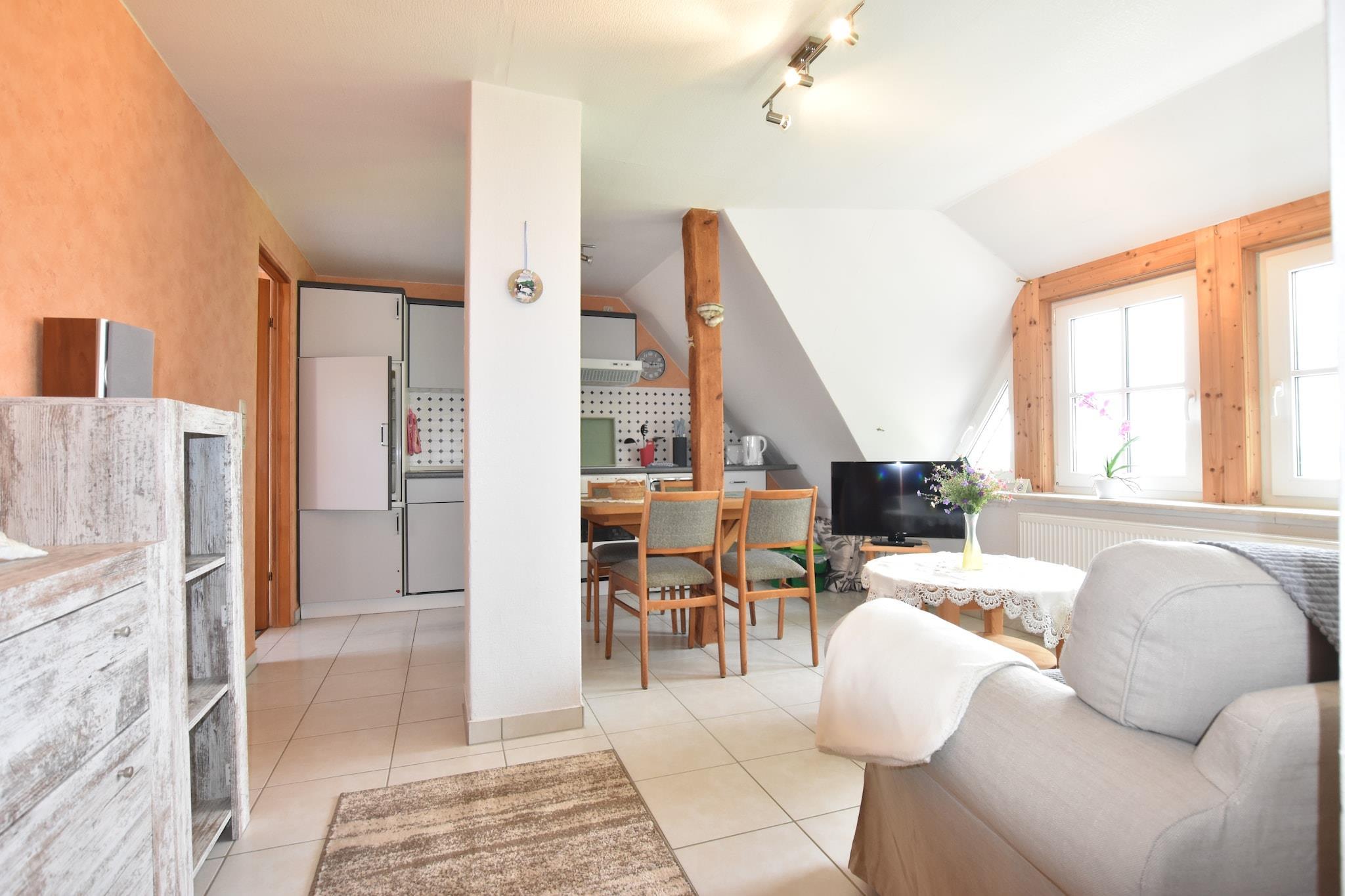 I Garz, på den sydlige spids af øen Rügen, i det lille distrikt Maltzienen, er det smukke gård med 3 Ferienwohnungen. Garz er den ældste by på Rügen med elskværdig karakter. Mange andre destinationer anbefaler dig som din værtinde. Det giver dig også den ene eller den anden hemmelige tip. Pladsen på 2000 kvm ligger i et roligt sted. Det tilbyder rolige øer samt masser af plads på en stor græsplæne at lege for børnene. Også i haven er en overdækket grill / opholdsstue. For hver lejlighed er der et opholdsområde i haven. Lejligheden på første sal består af køkken, 2 soveværelser og et badeværelse med bruser / toilet. Svømning i nærheden er omkring 3 km væk på den naturlige strand. Den nærmeste sandstrand ligger i den baltiske udvej Binz 20 km væk. Din ferieboliger er et godt udgangspunkt for at udforske øen såvel som det omkringliggende område. Mindre cykelture på landet anbefales stærkt.