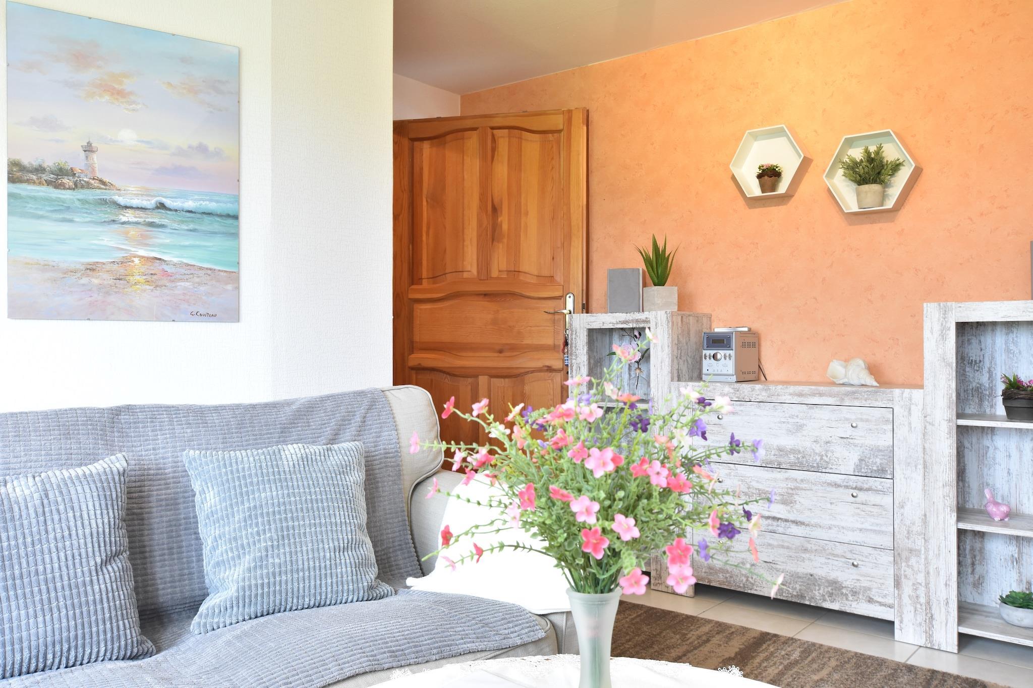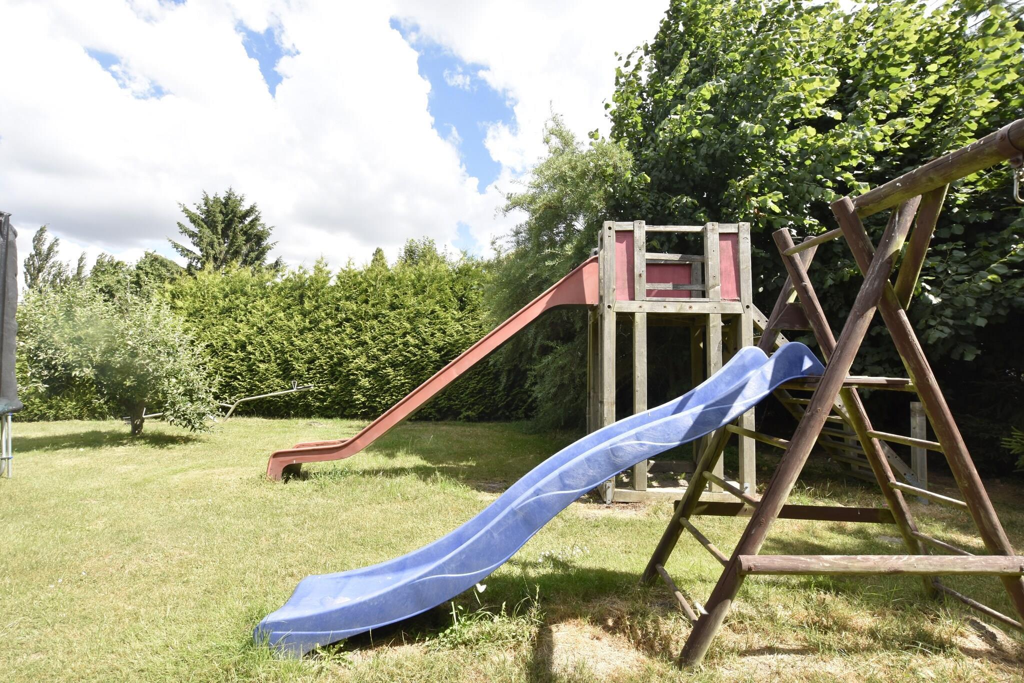 Loft: (åbent køkken(kogeplade, elkedel, brødrister, emhætte, kaffemaskine, opvaskemaskine , køle-fryseskab), stue / spisestue(Fjernsyn, sofahjørne, radio), soveværelse(2x enkeltseng), soveværelse(king size-seng), badeværelse(bruser, toilet)) terrasse, have, havemøbler, grill, parkering, bordtennisbord