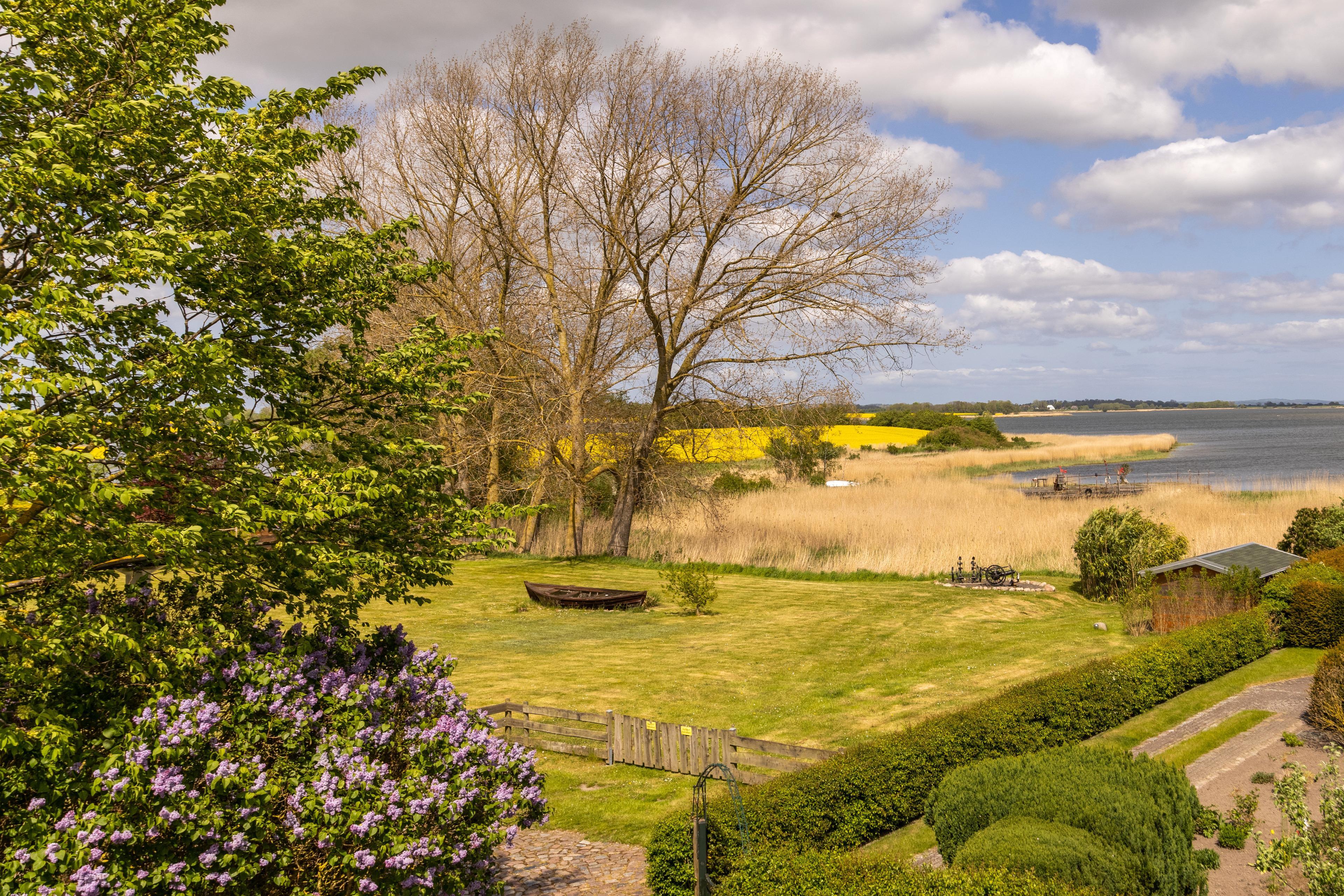 Ein besonderes Highlight ist das zusätzliche, private Wiesengrundstück direkt am Bodden mit eigenem Steg, Gartenhaus und Sitzgruppe; ein seltener Luxus und ideal für Naturgenießer, Romantiker und Angler.