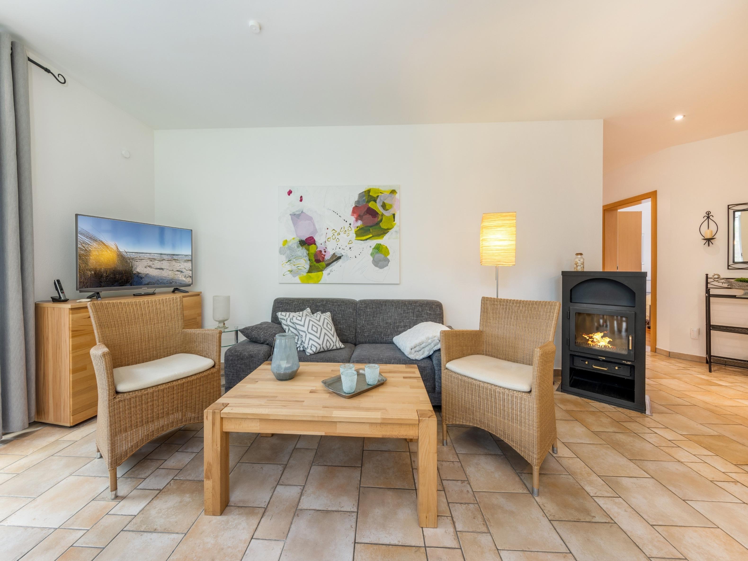 Zwei gemütliche Kamine schaffen eine warme Atmosphäre an kühleren Tagen – ideal für Herbst- und Winterauszeiten.