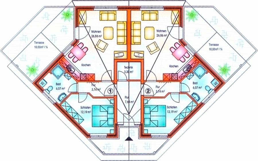 Das Haus wurde erst 2011 fertiggestellt. In ihm befindet sich diese Ferienwohnung mit 54 m². Sie bietet Platz für 2- 4 Personen.