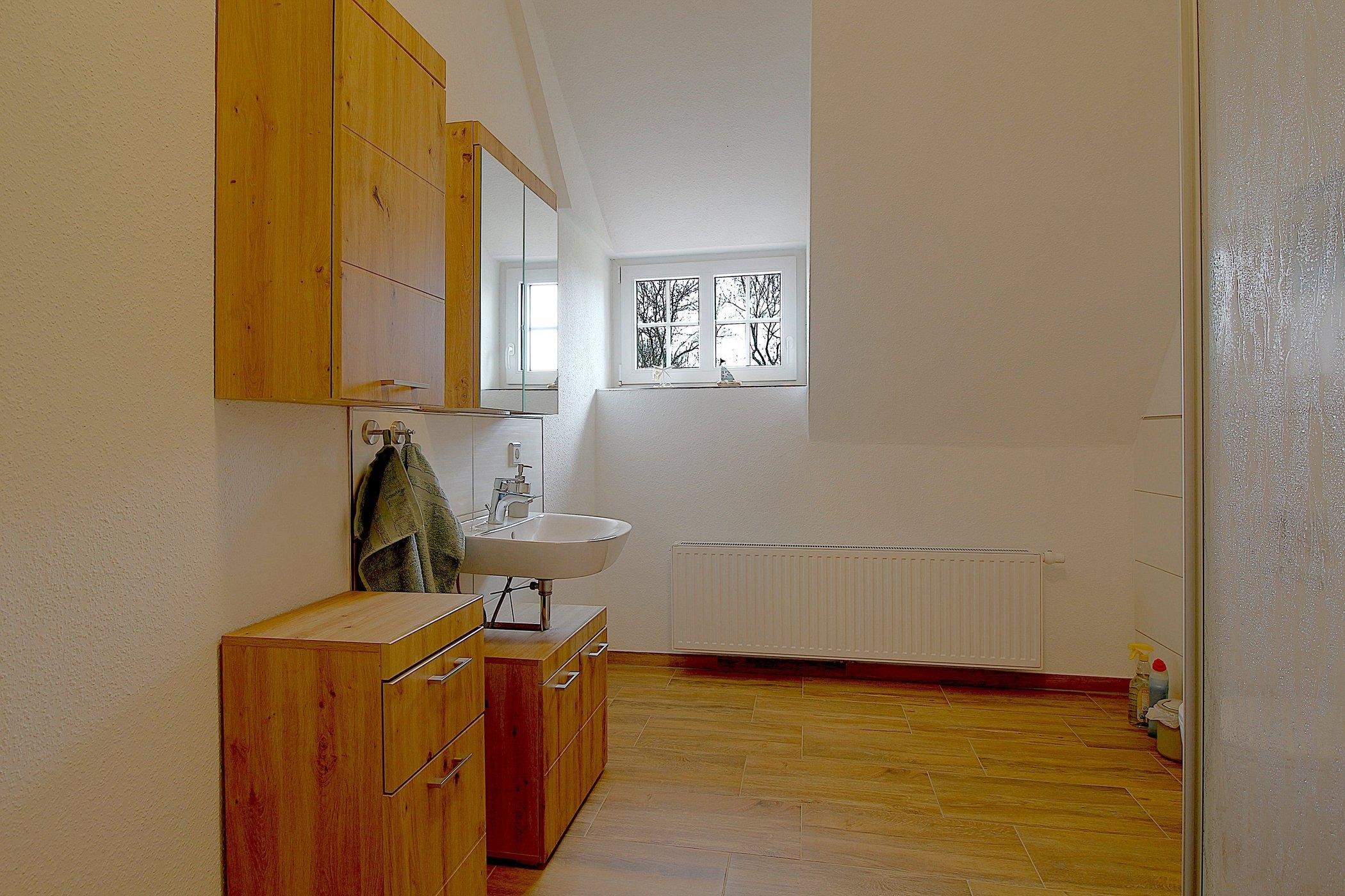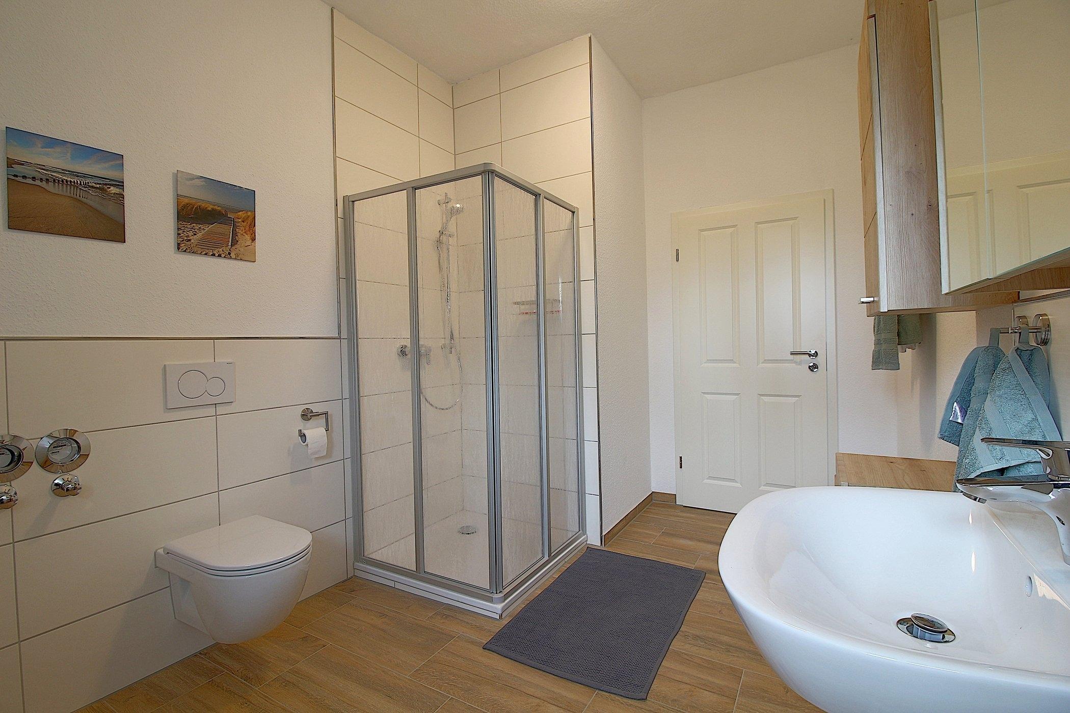 Ein gemütliches Schlafzimmer mit komfortablem Doppelbett garantiert erholsame Nächte. Ein offener Flur mit einer Doppelschlafcouch (1,40x2,00m) ist für 2 weitere Gäste vorhanden, während das geräumige Duschbad mit Fenster für zusätzlichen Komfort sorgt. Bettwäsche und Handtücher sind selbstverständlich vorhanden, sodass Sie sich um nichts kümmern müssen.