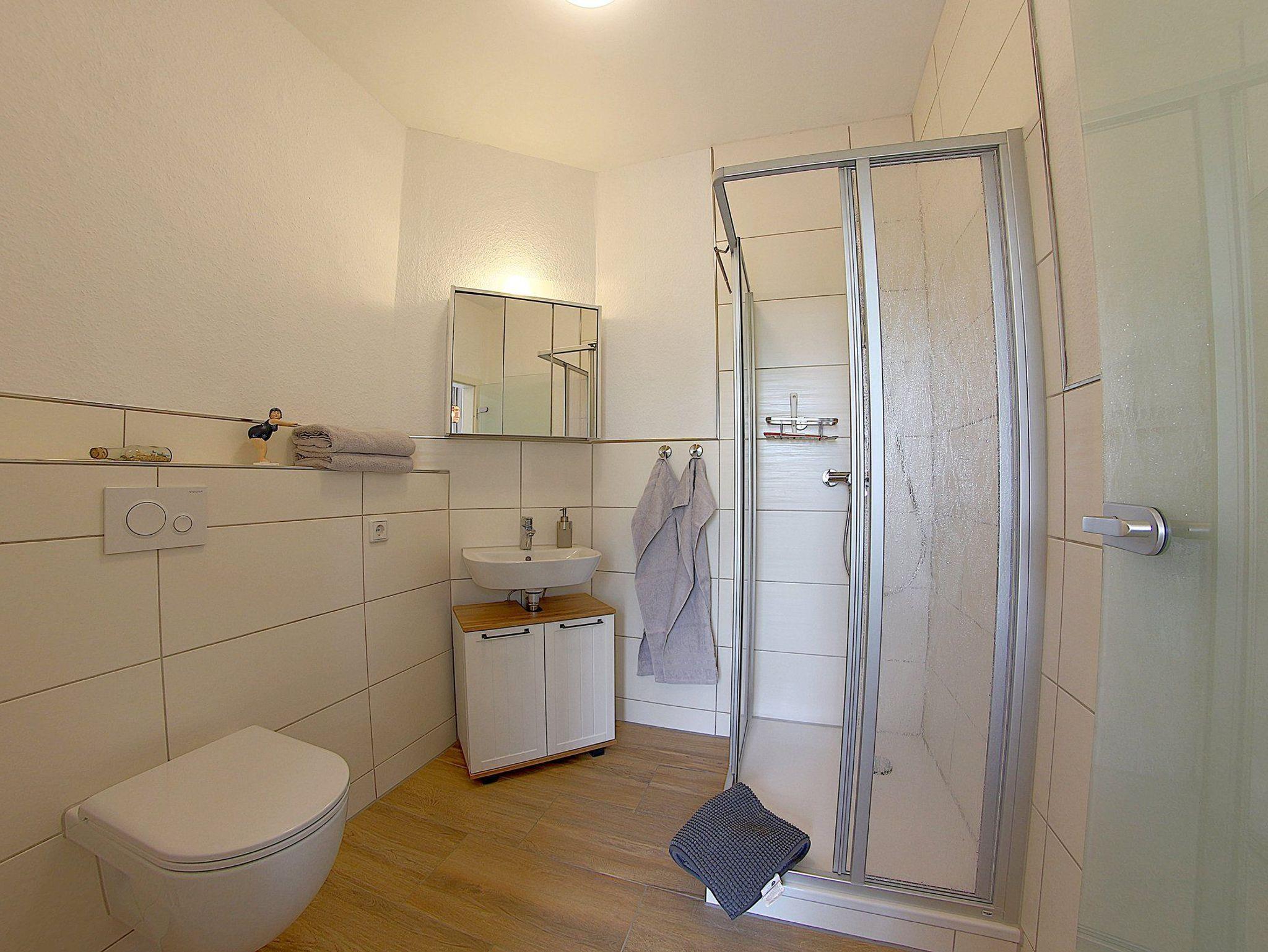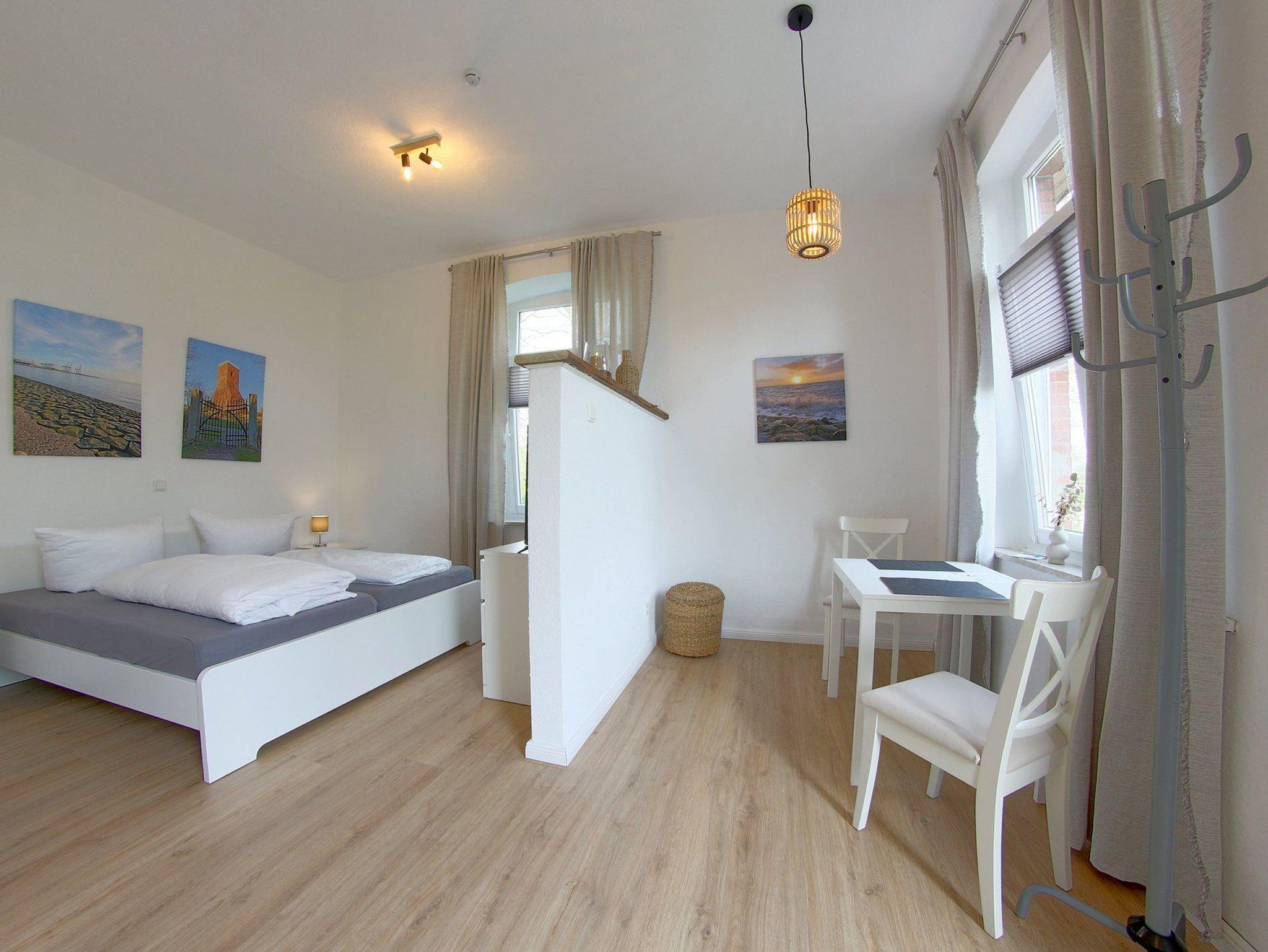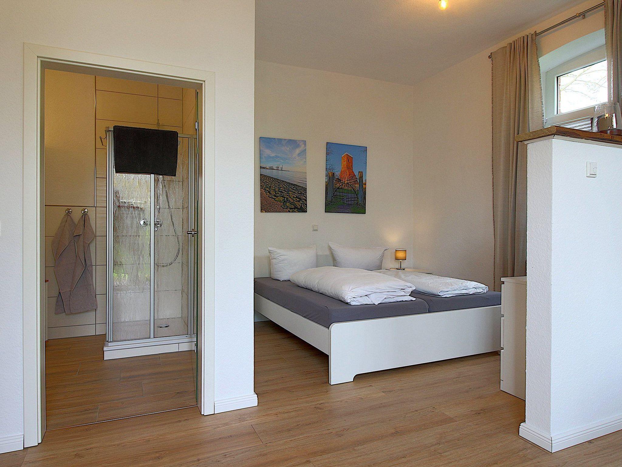 In der Ferienwohnung finden Sie ein komfortables[nbsp] Doppelbett, das für erholsame Nächte sorgt.[nbsp] Das innenliegende Badezimmer ist mit einer Dusche und WC ausgestattet.