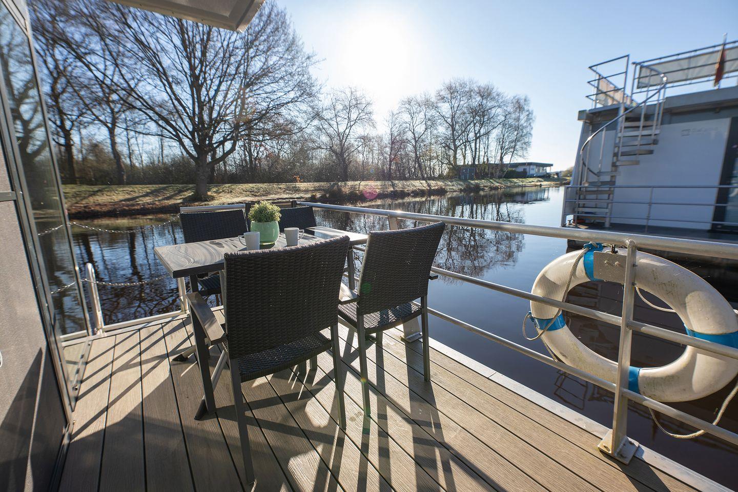 Urlaub auf dem festliegenden Hausboot, ganz ohne Bootsführerschein.