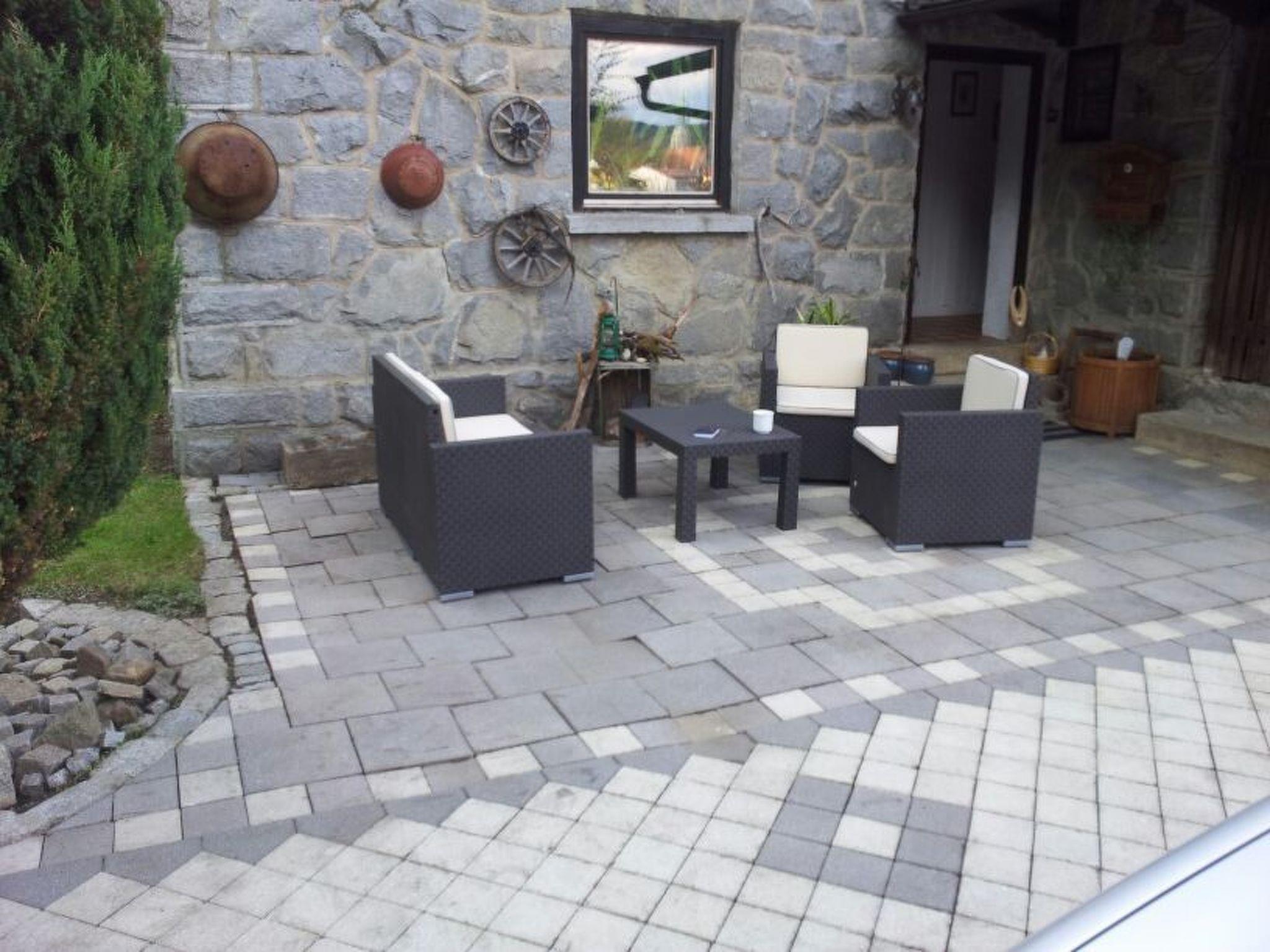 Terrace, chairs with cushions, deckchairs, parasol, small barbecue and barbecue area in the 1200 square metre garden.