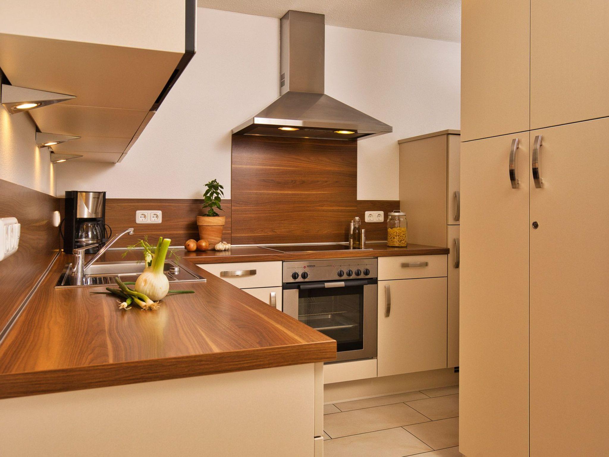 The house is completely new and lovingly furnished with high-quality, modern furniture. Each holiday flat has a storeroom/utility room. The holiday flats are barrier-free. The kitchens are fully equipped, including a dishwasher, electric cooker, microwave, oven, fridge with freezer compartment and extractor fan. All flats have a wood-burning stove with soapstone panelling and a glass panel for a romantic atmosphere. The wood for this is available free of charge. The bathroom has a large washbasin, WC and shower. Towels and bathrobes are provided free of charge. All flats are equipped with central heating. All beds are double beds with two separate mattresses. These measure 90 cm x 200 cm.