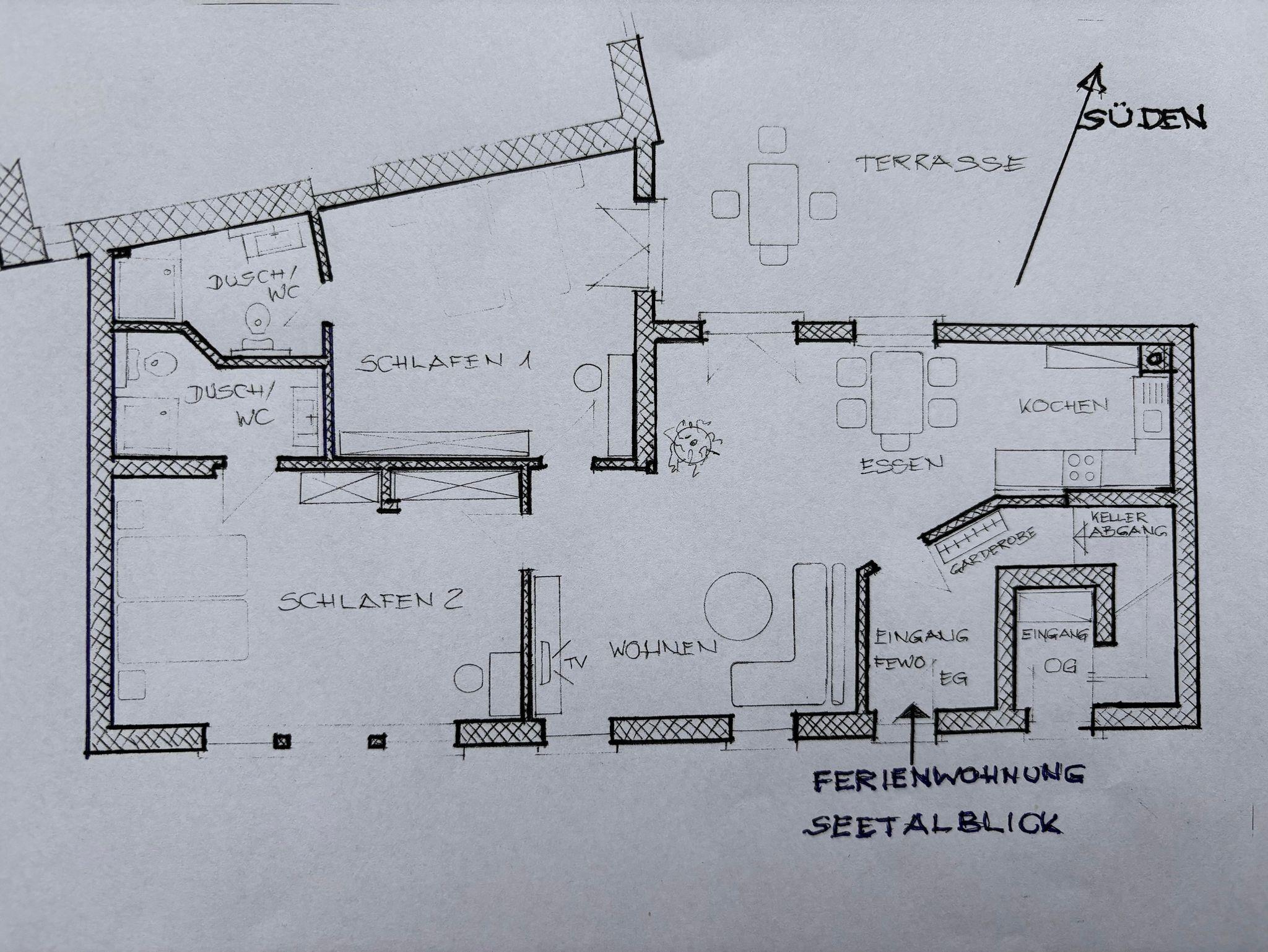 Ferienwohnung Seetalblick, Appartement/Fewo, Dusche, WC, Nichtraucher