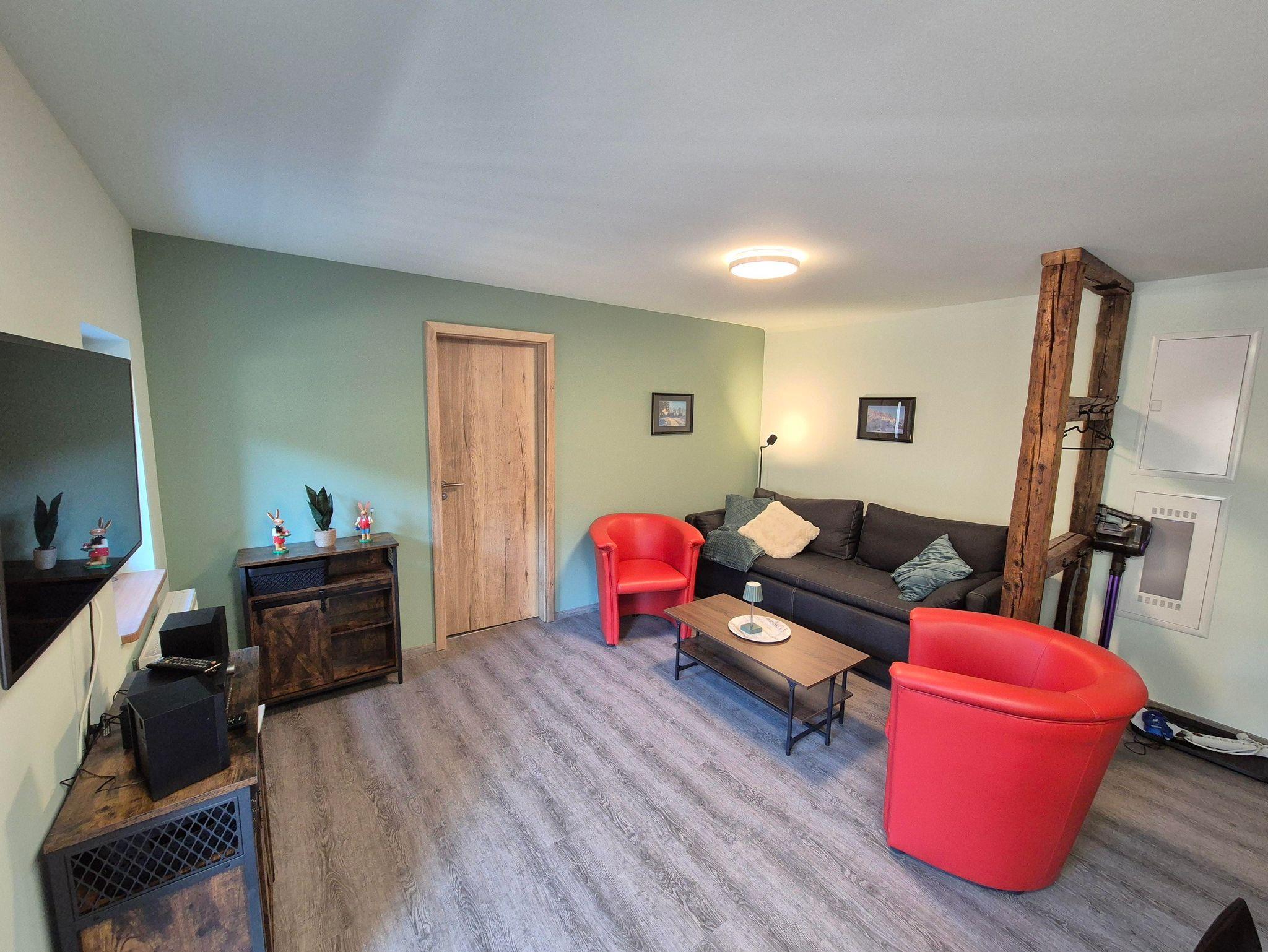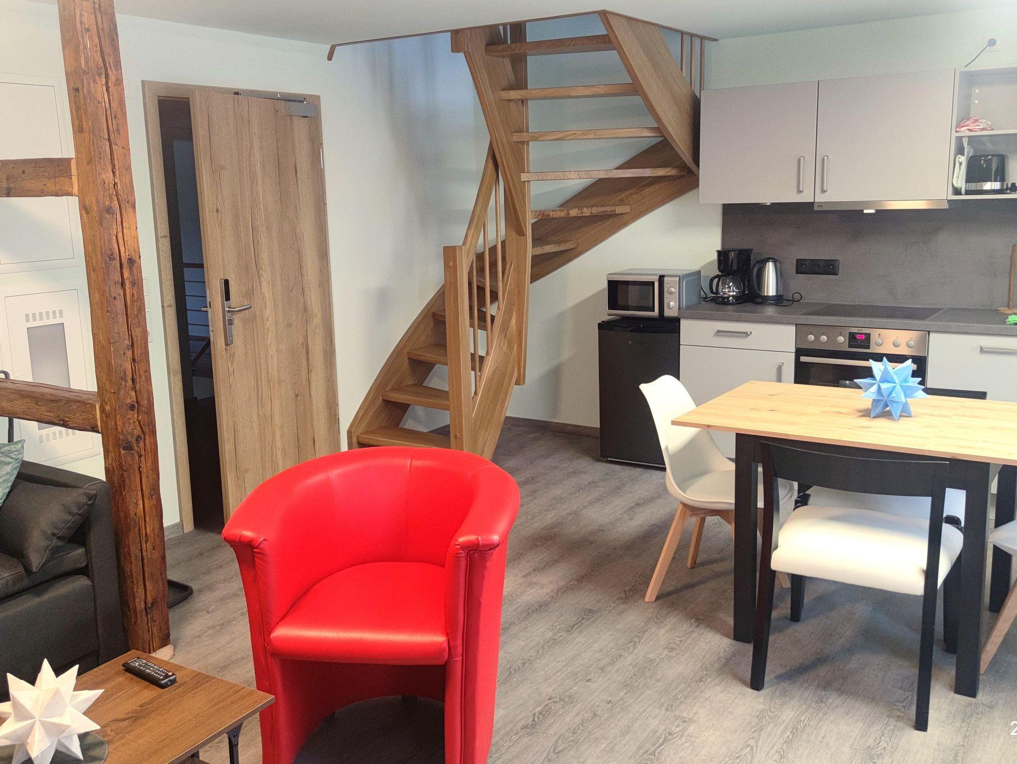 Die FeWo Geisingberg im 1. OG besteht aus Wohnzimmer mit neuer Einbauküche (inklusive Backofen, Mikrowelle und Geschirrspüler) Esstisch, Couch (2 Aufbettungen, 160x200cm), Sat-TV, Bad mit Dusche/WC und Infrarotsauna, über 70cm breite Treppe zum Maisonette-Schlafzimmer im 2.OG, mit Doppelbett (180x200cm) und kleiner Sitzecke; 2 Balkone je vom Schlafzimmer und Wohnzimmer mit Bergblick!