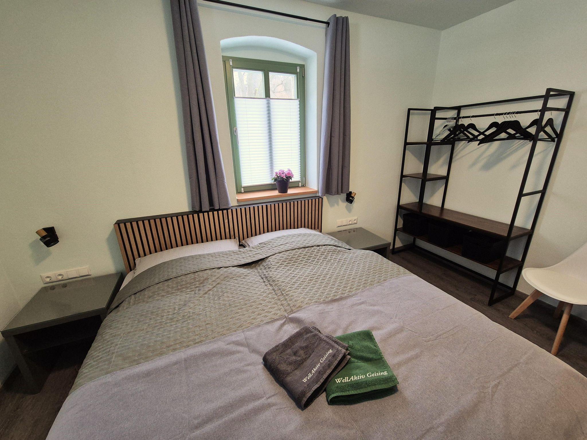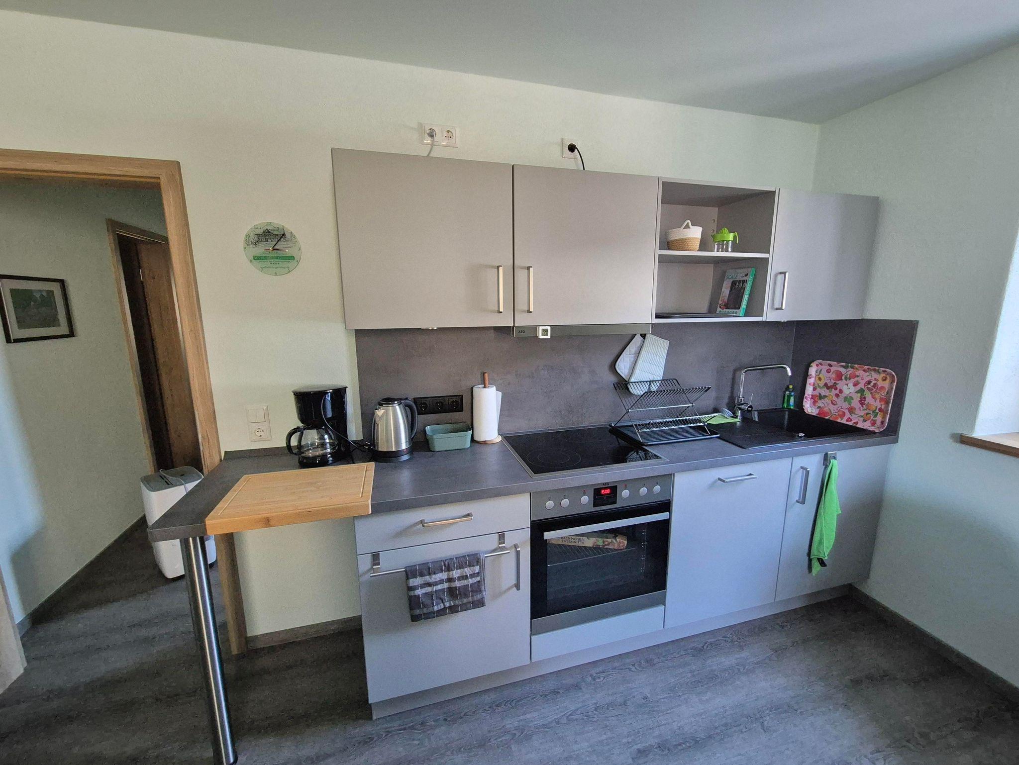 Die FeWo Wildpark befindet sich im EG li,(separater) Außenzugang über eigene Terrasse, besteht aus Wohnzimmer mit neuer Einbauküche (inkl. Backofen, Mikrowelle und Geschirrspüler), Esstisch, Couch (1 Aufbettung), Sat-TV, Schlafzimmer mit Doppelbett (180x200cm), Bad mit Dusche, WC und Infrarot-Sauna.