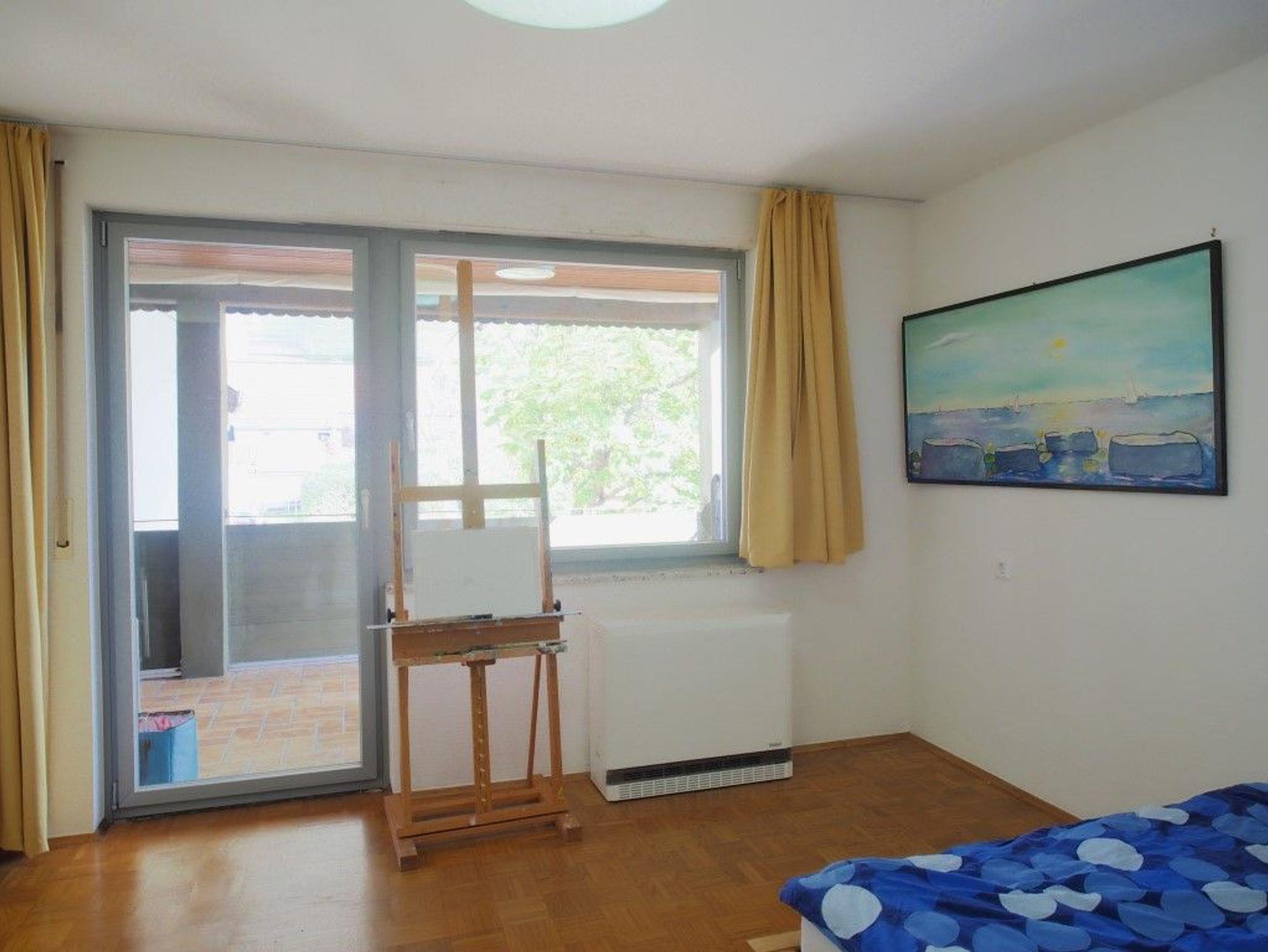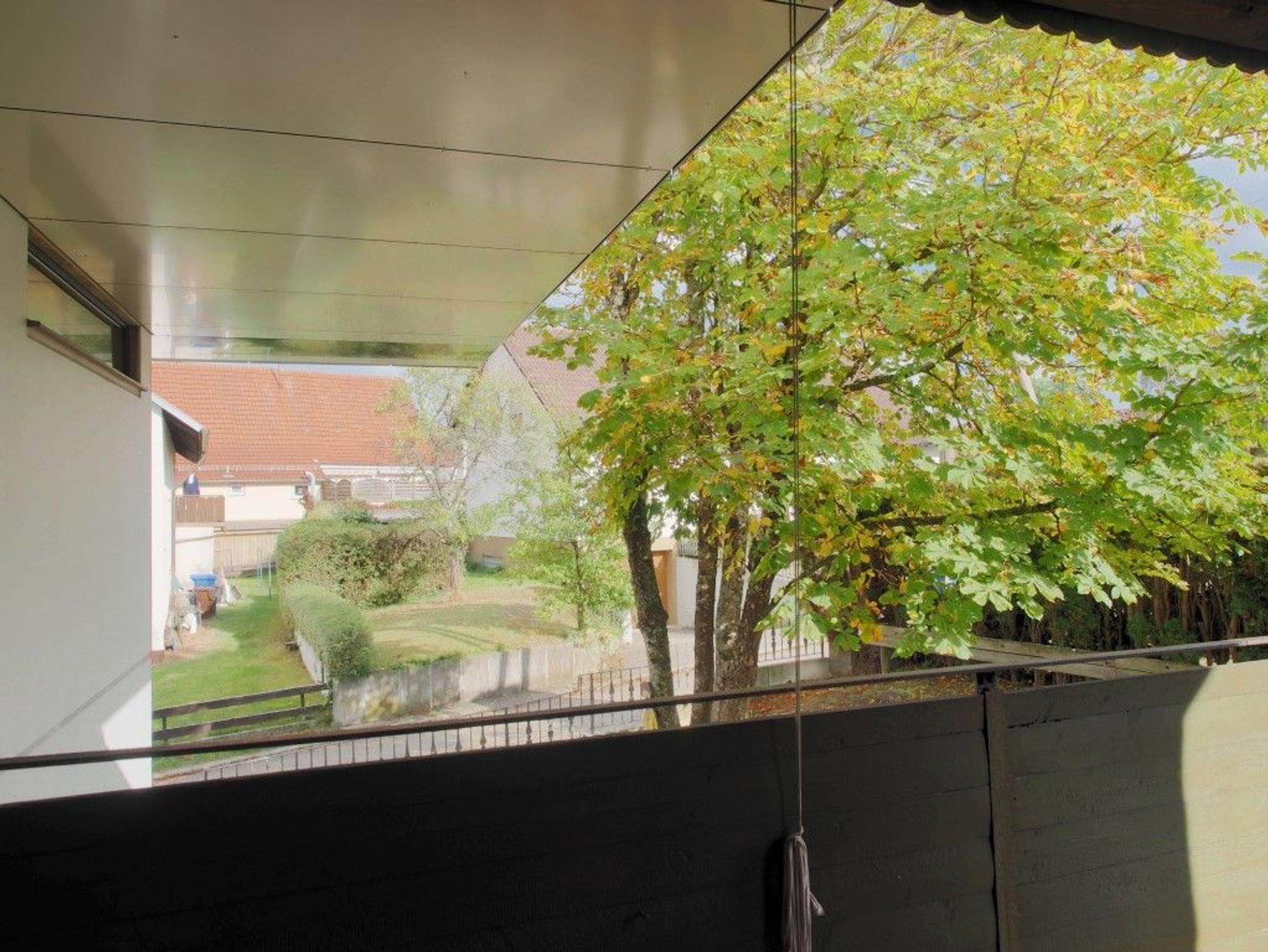 An Küche und Schlafzimmer ist ein Balkon mit Südostausrichtung über Fenstertüren angeschlossen.