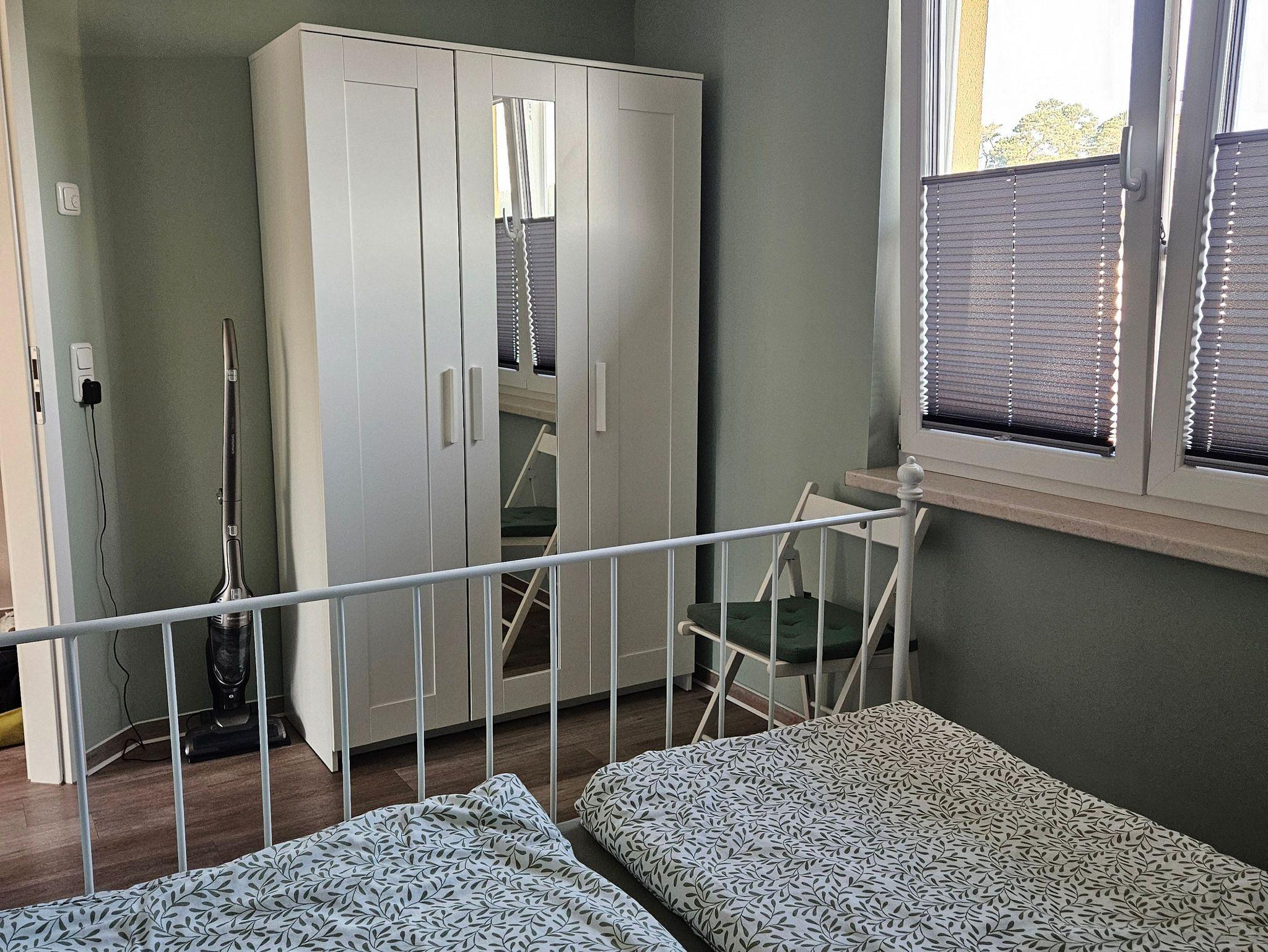 Für die kleine Reinigung zwischendurch steht ein Akkustaubsauger im Schalfzimmer zur Verfügung.
