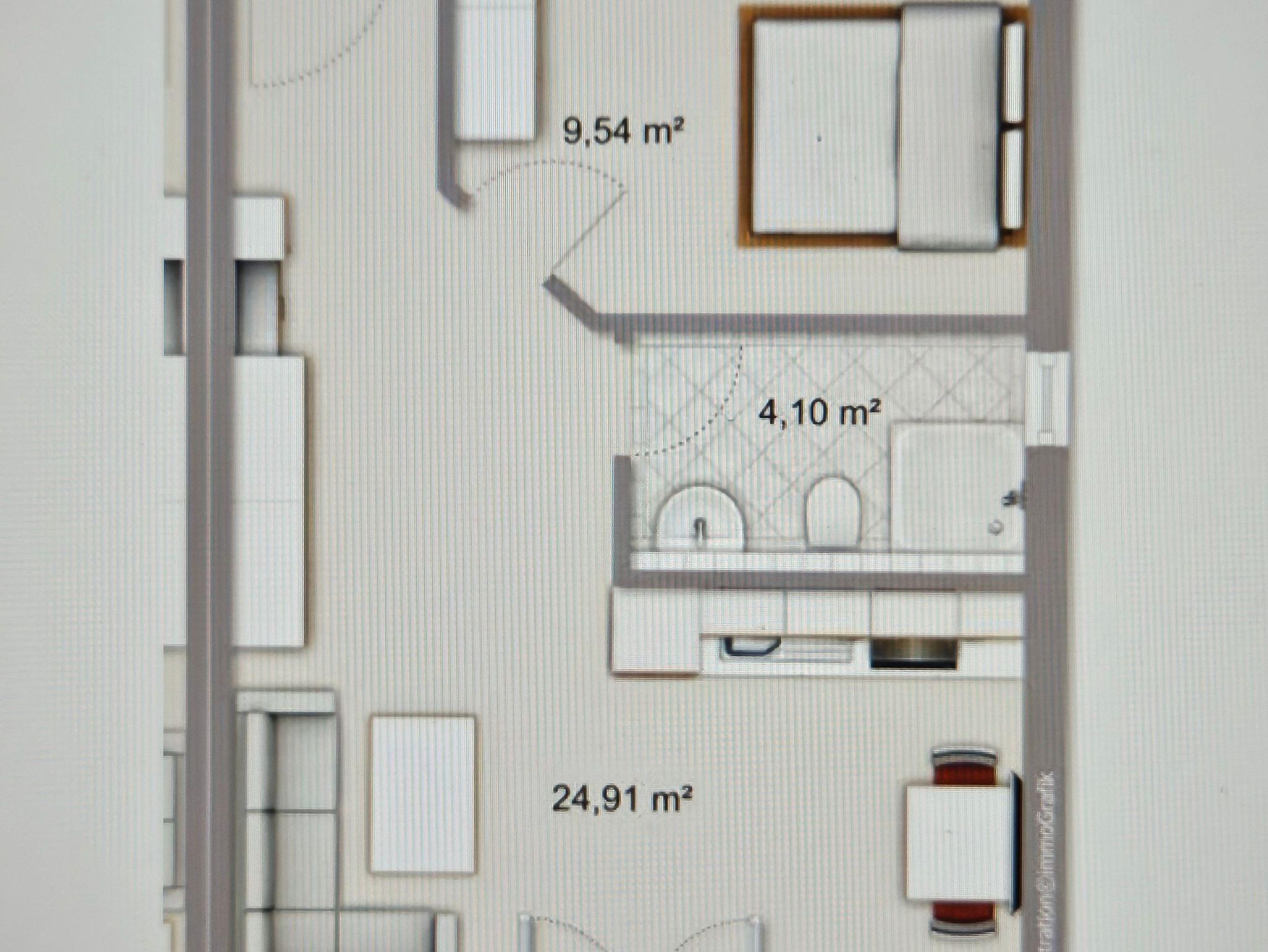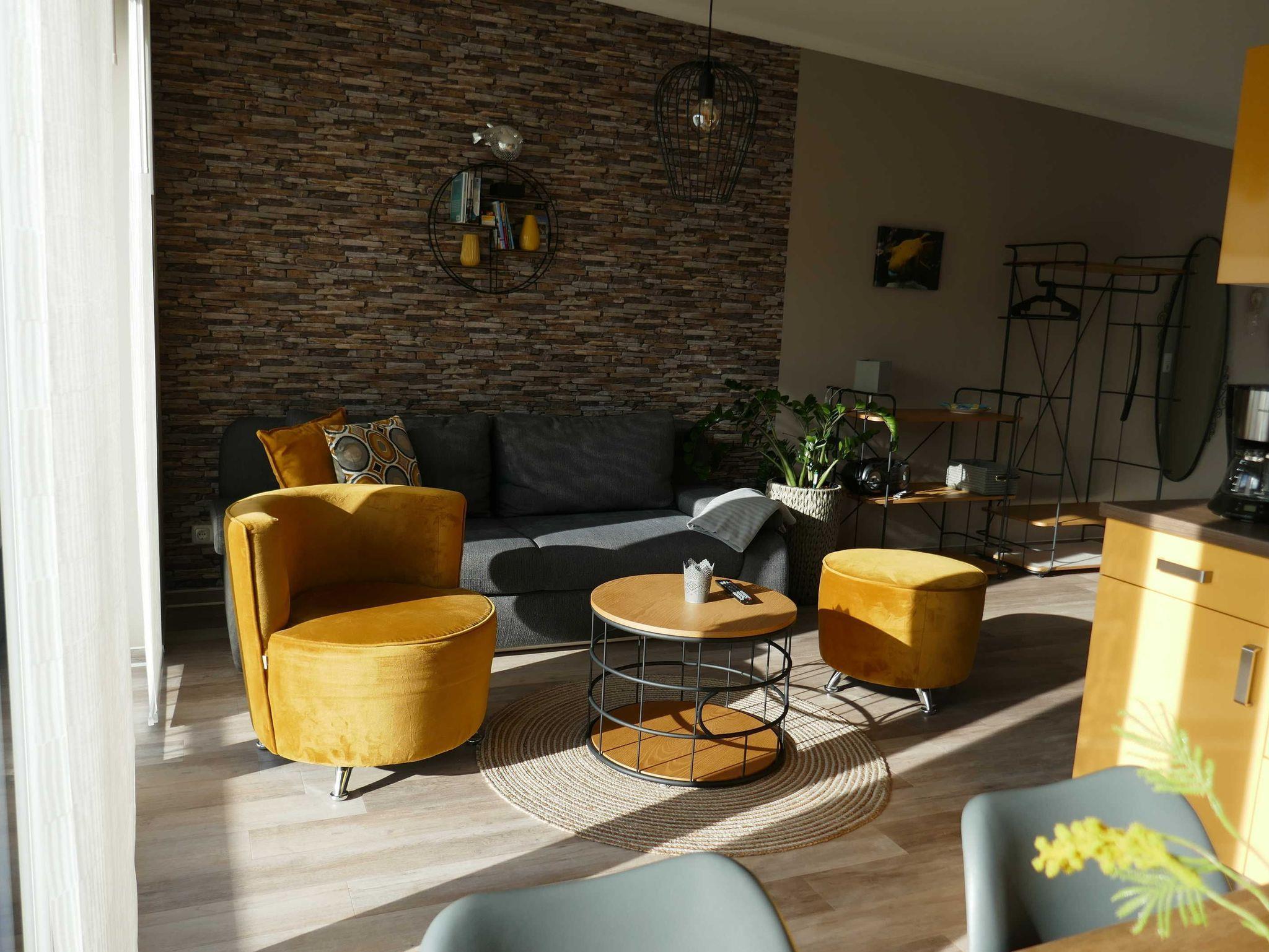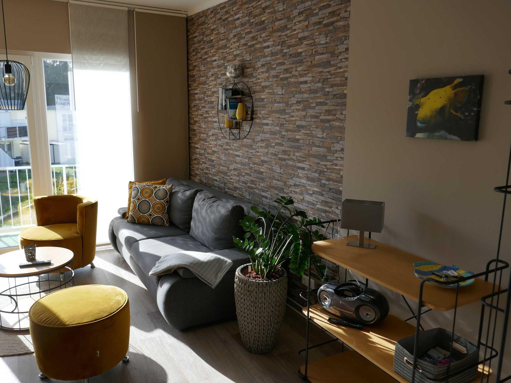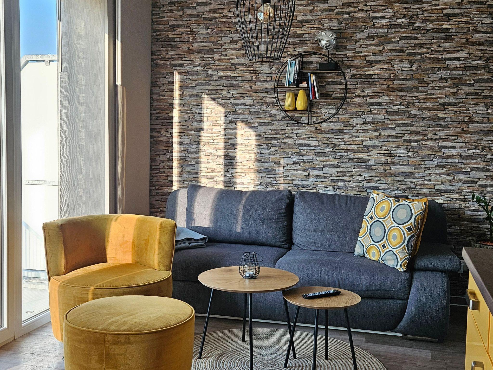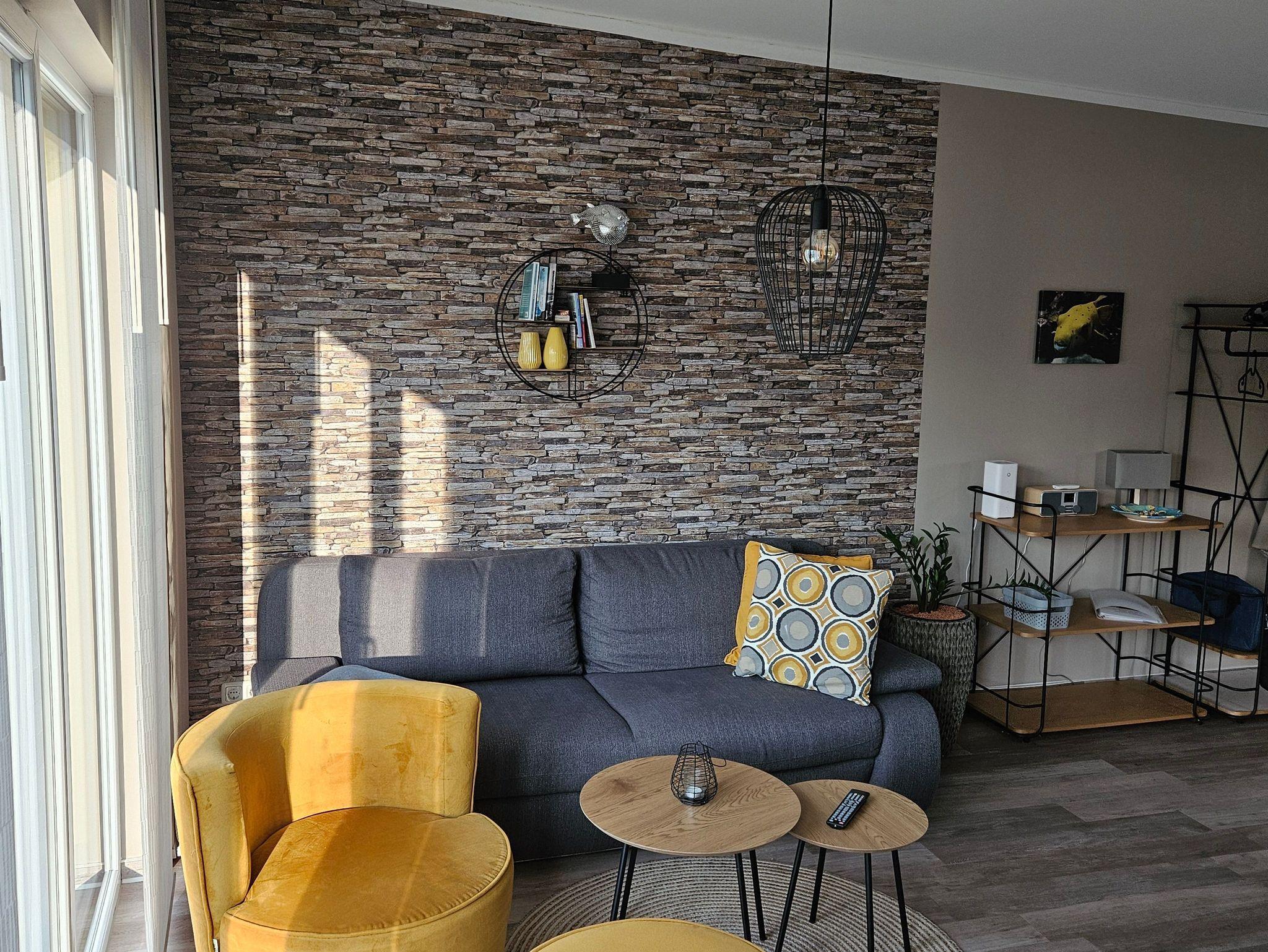 Mit der Schlafcouch im Wohnbereich ist die Wohnung für bis zu 4 Personen geeignet. Die Schlafcouch im Wohnbereich hat eine Liegefläche von 200 cm x 180 cm.