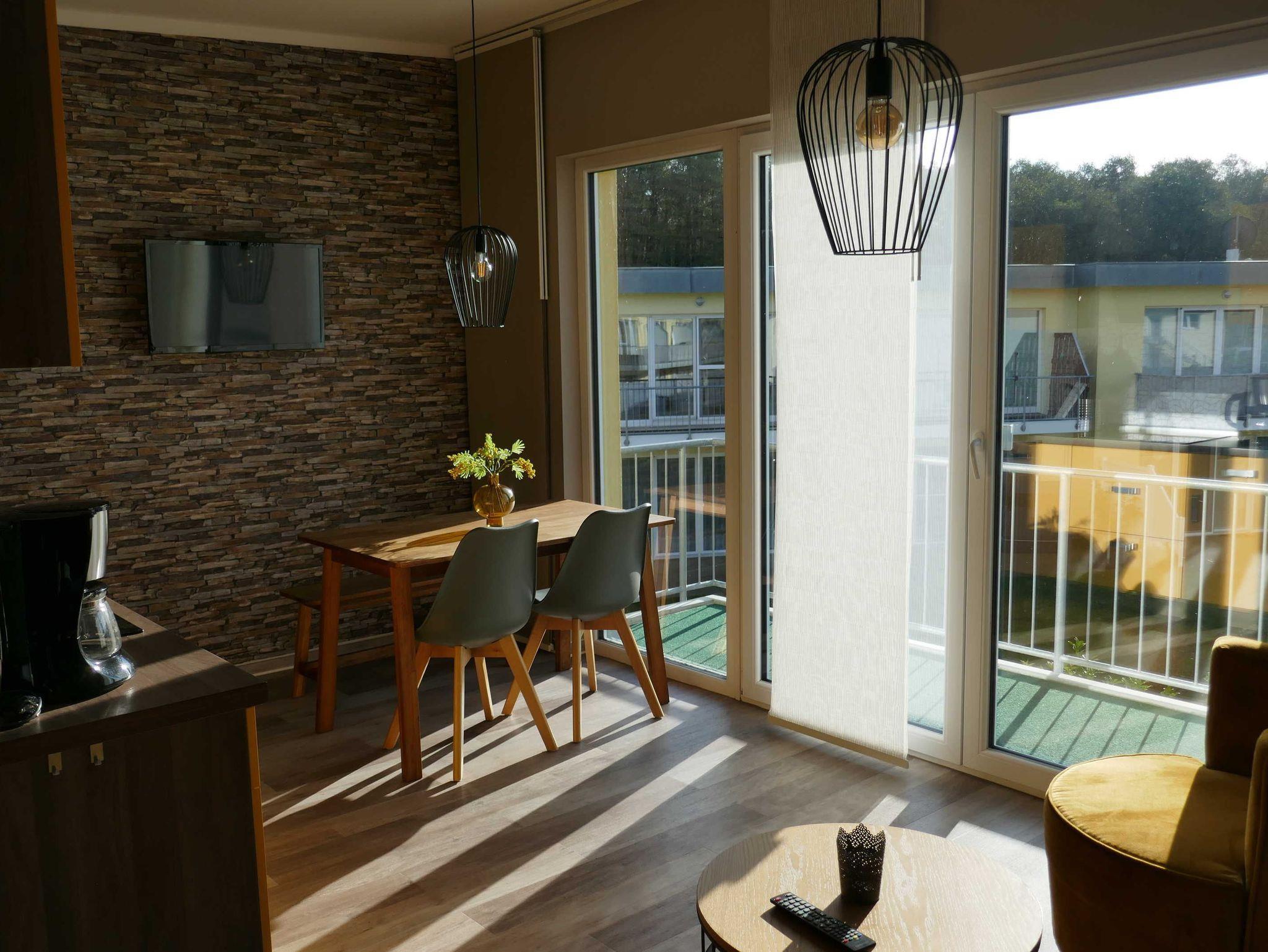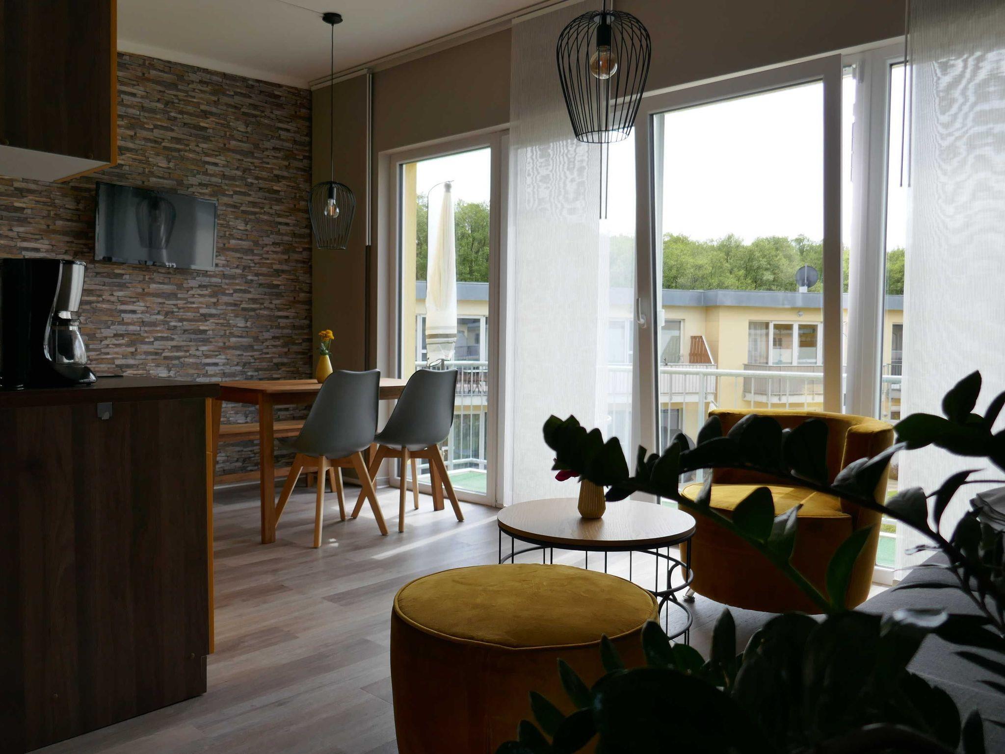 Die moderne 2-Zimmer-Ferienwohnung wurde im Jahr 2018 neu errichtet. Sie befindet sich im Ferienpark Küstenwald ganz in der Nähe von Graal-Müritz.