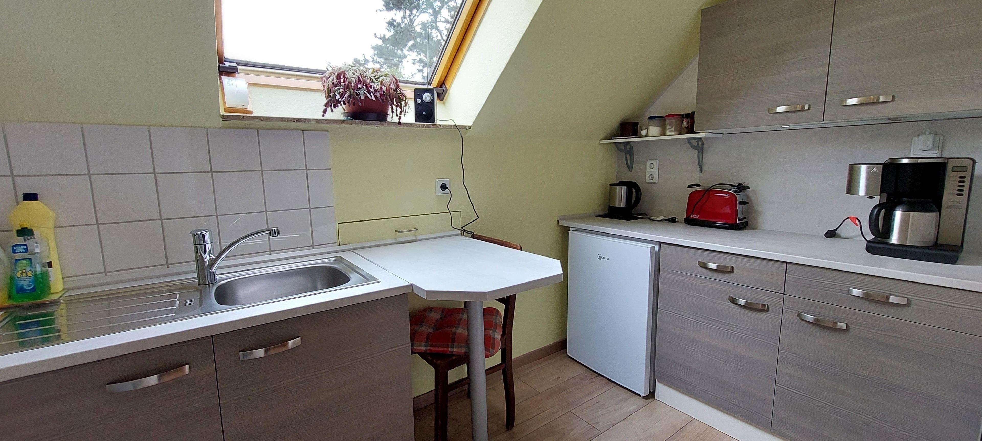 Die Obergeschosswohnung ist hell und freundlich eingerichtet. Wohnzimmer mit Balkon und Doppelbettchouch,Schlafzimmer mit Doppelbett, Aufbettung möglich, Küche mit guter Austattung und ein modernes Bad mit bodengleicher Dusche.