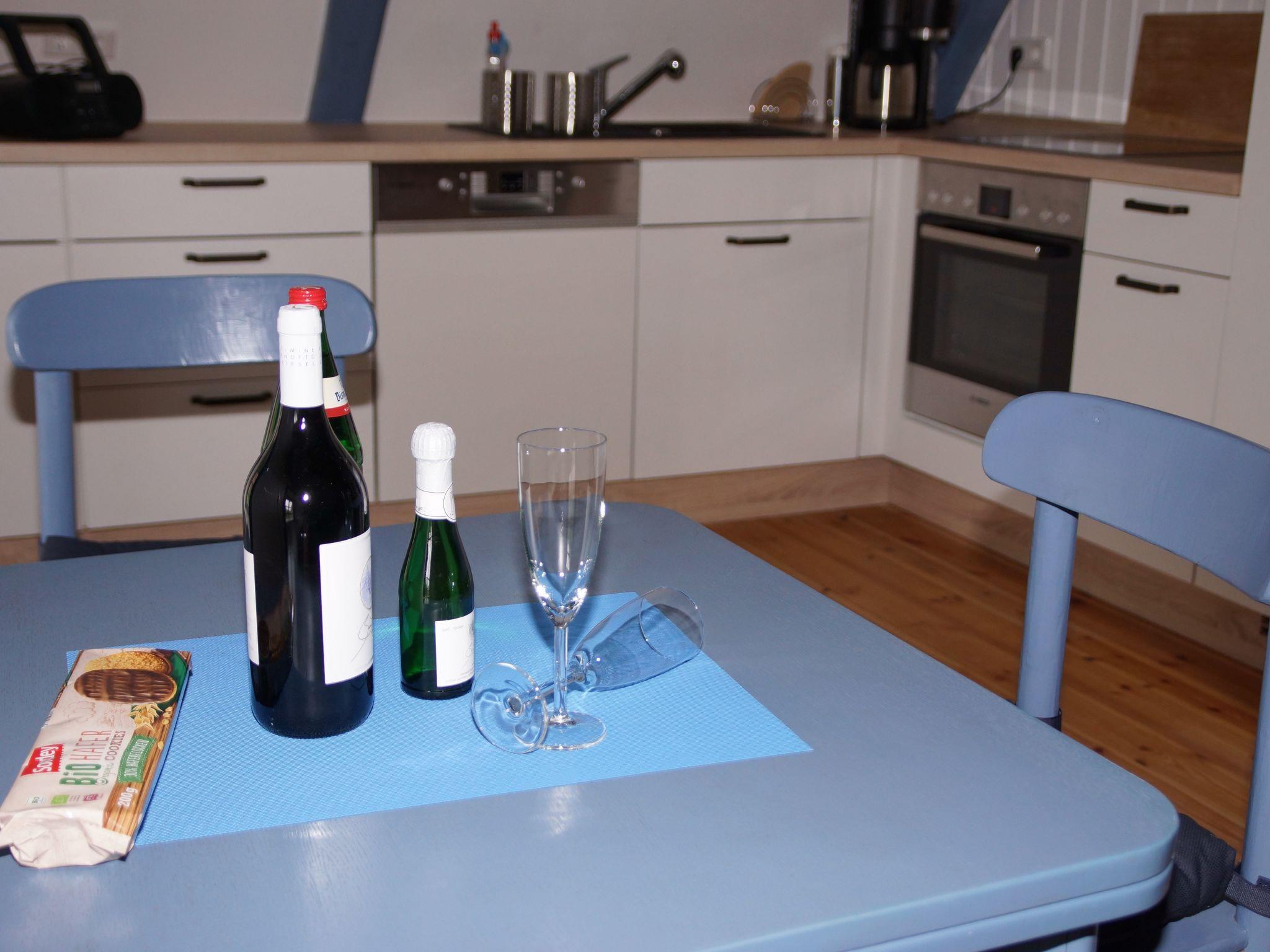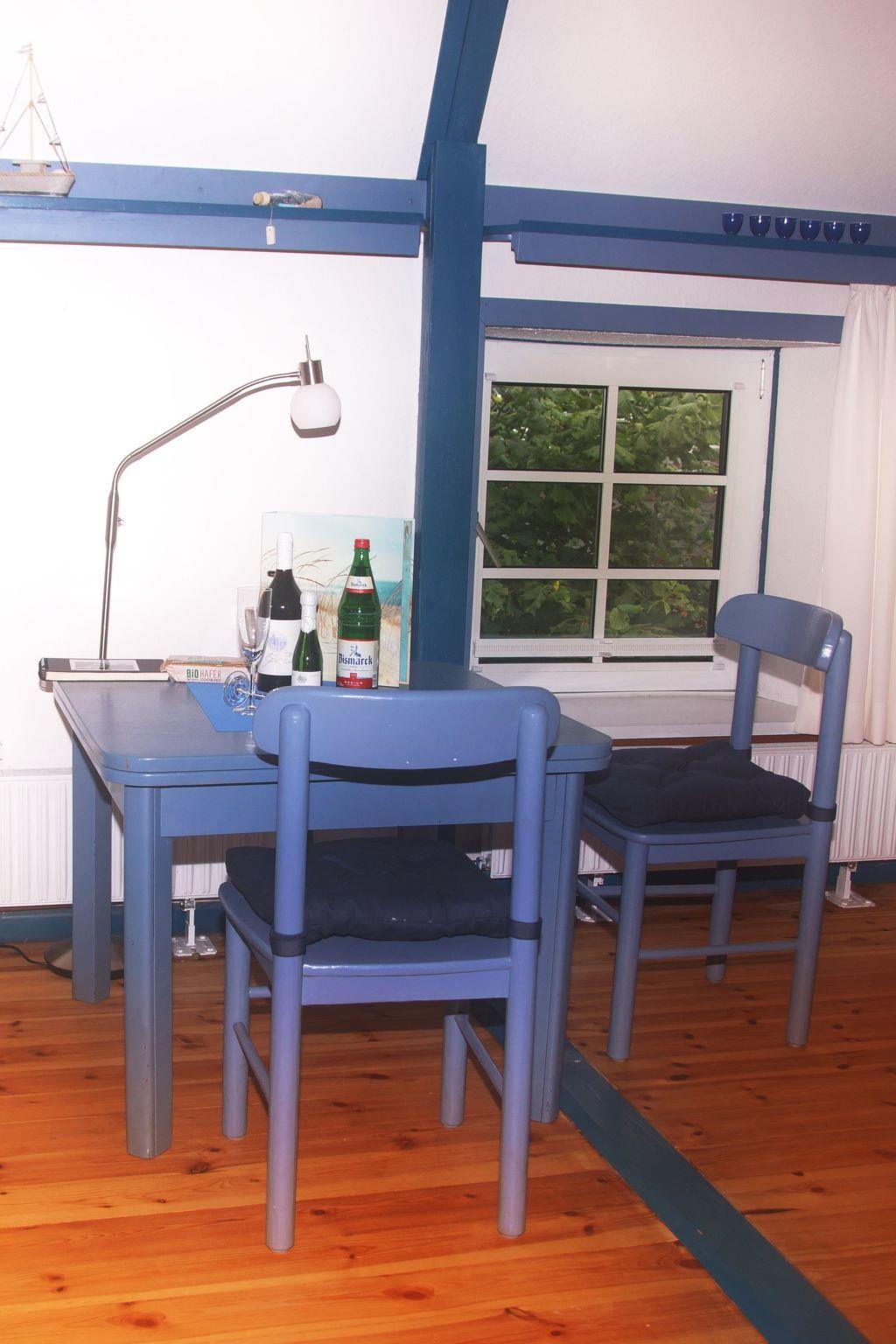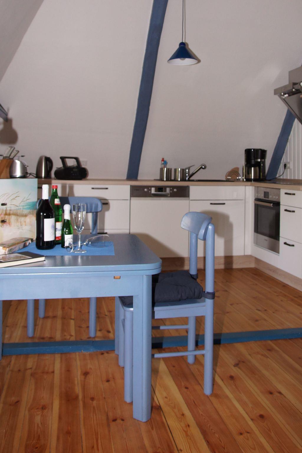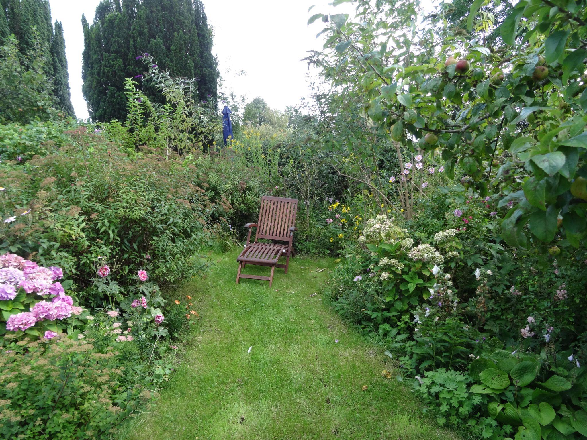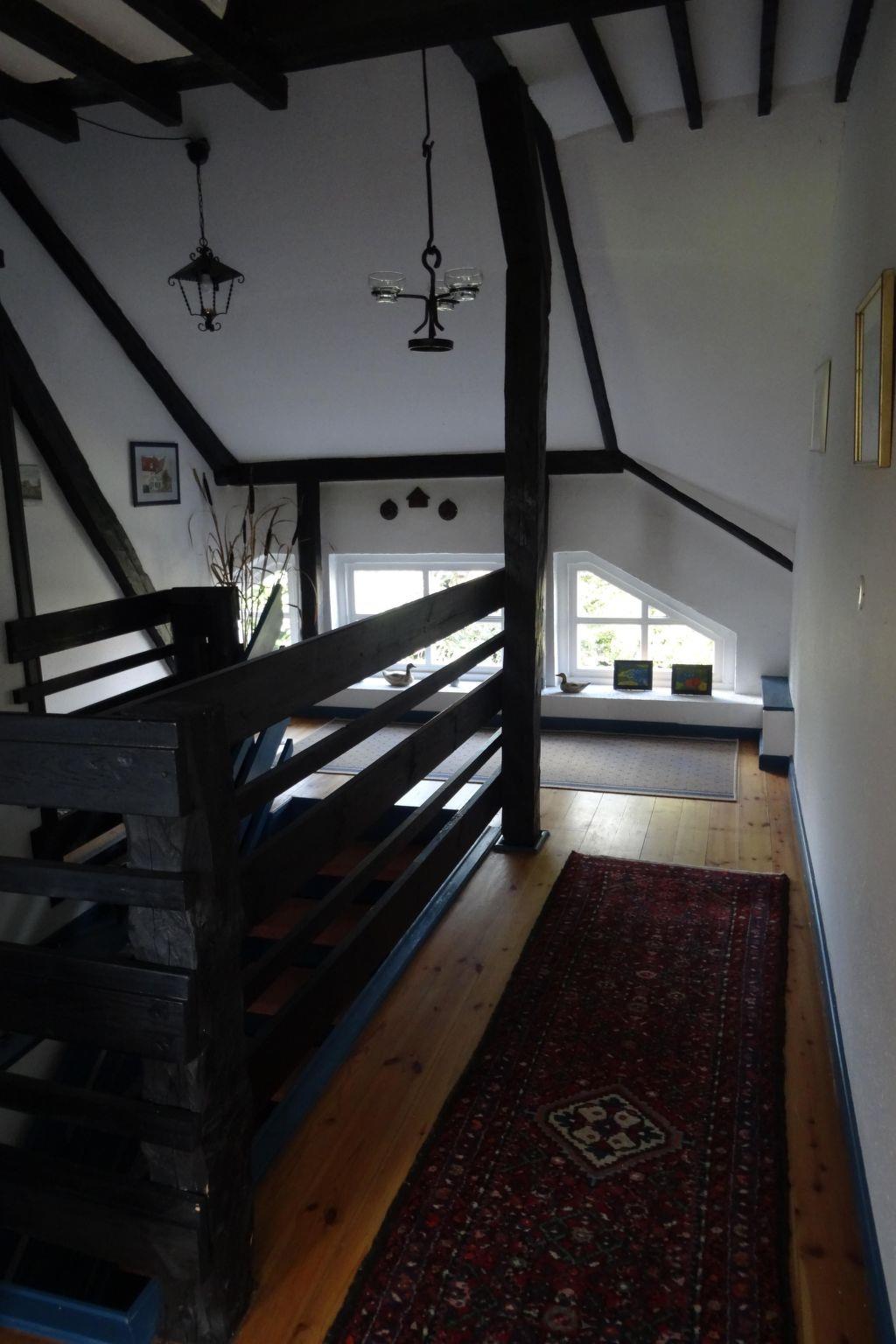 Outside, you can relax on a private seating area with garden chairs, table and parasol surrounded by flowering plants and fruit trees. A sauna is available in the garden from April and an outdoor shower is available from October. 40 m² of the stairwell offer a marvellous view over meadows and fields as well as access to a cleaning room and a washing machine and dryer, which can be used free of charge. A selection of books, games, DVDs and BluRays rounds off the offer.