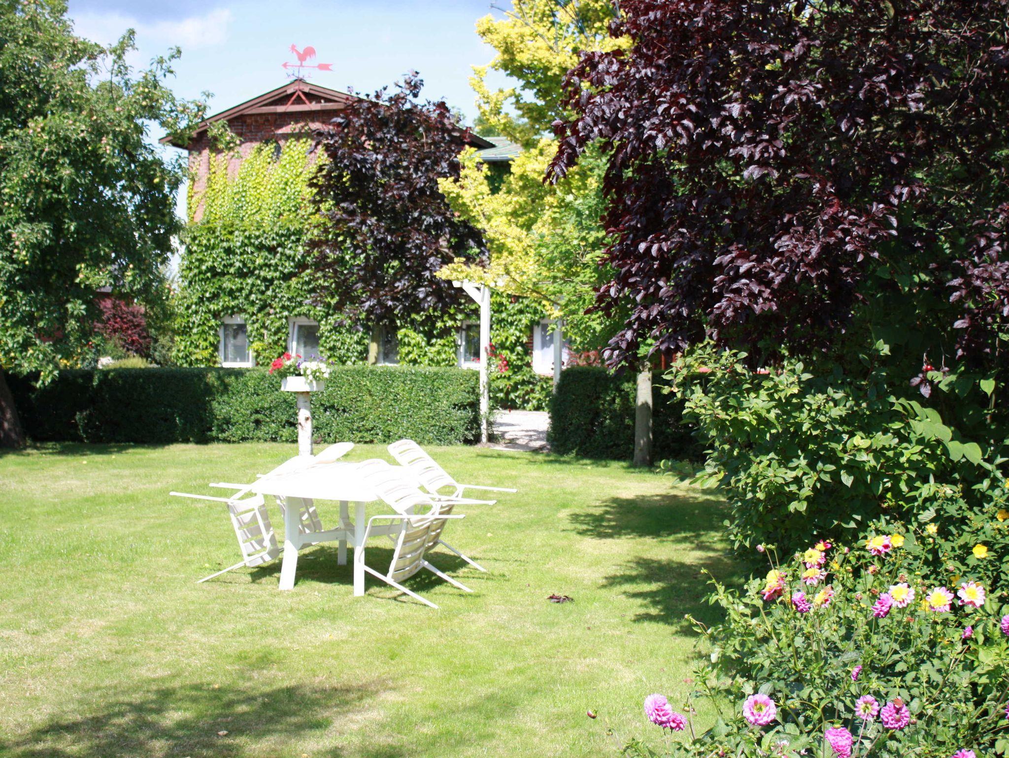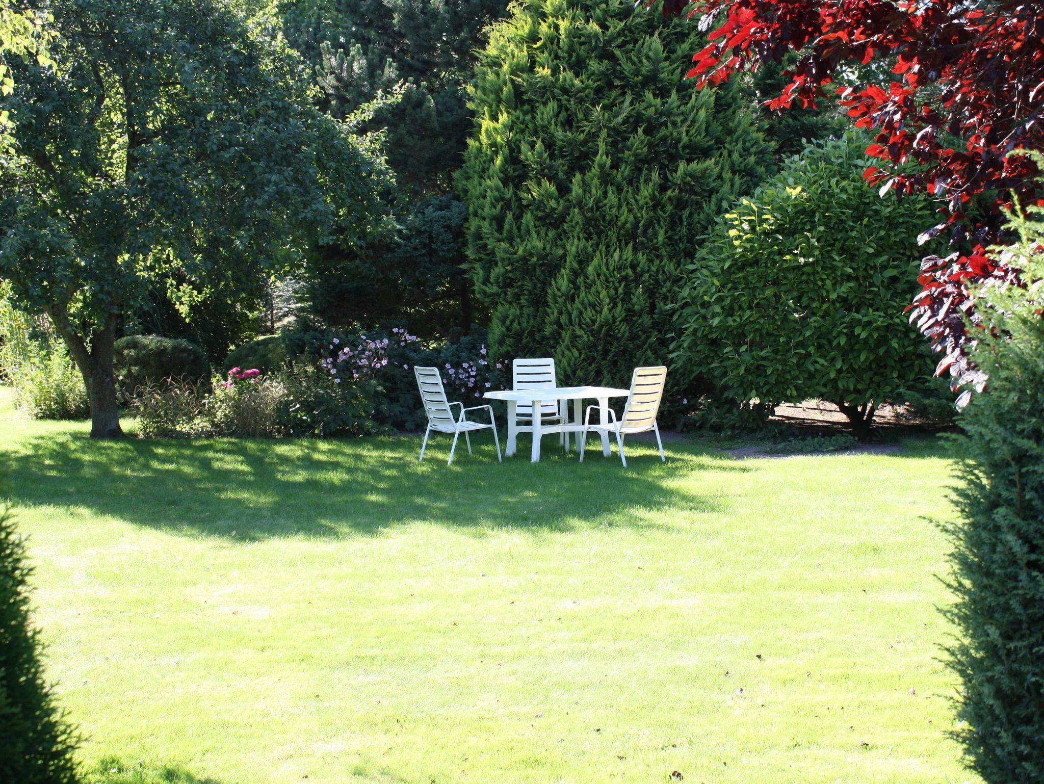 Der große Garten des Anwesens steht allein den Gästen der beiden Ferienwohnungen zum Entspannen und Sonnenbaden zur Verfügung. Ein Holzkohlegrill kann beim Vermieter angefragt werden.