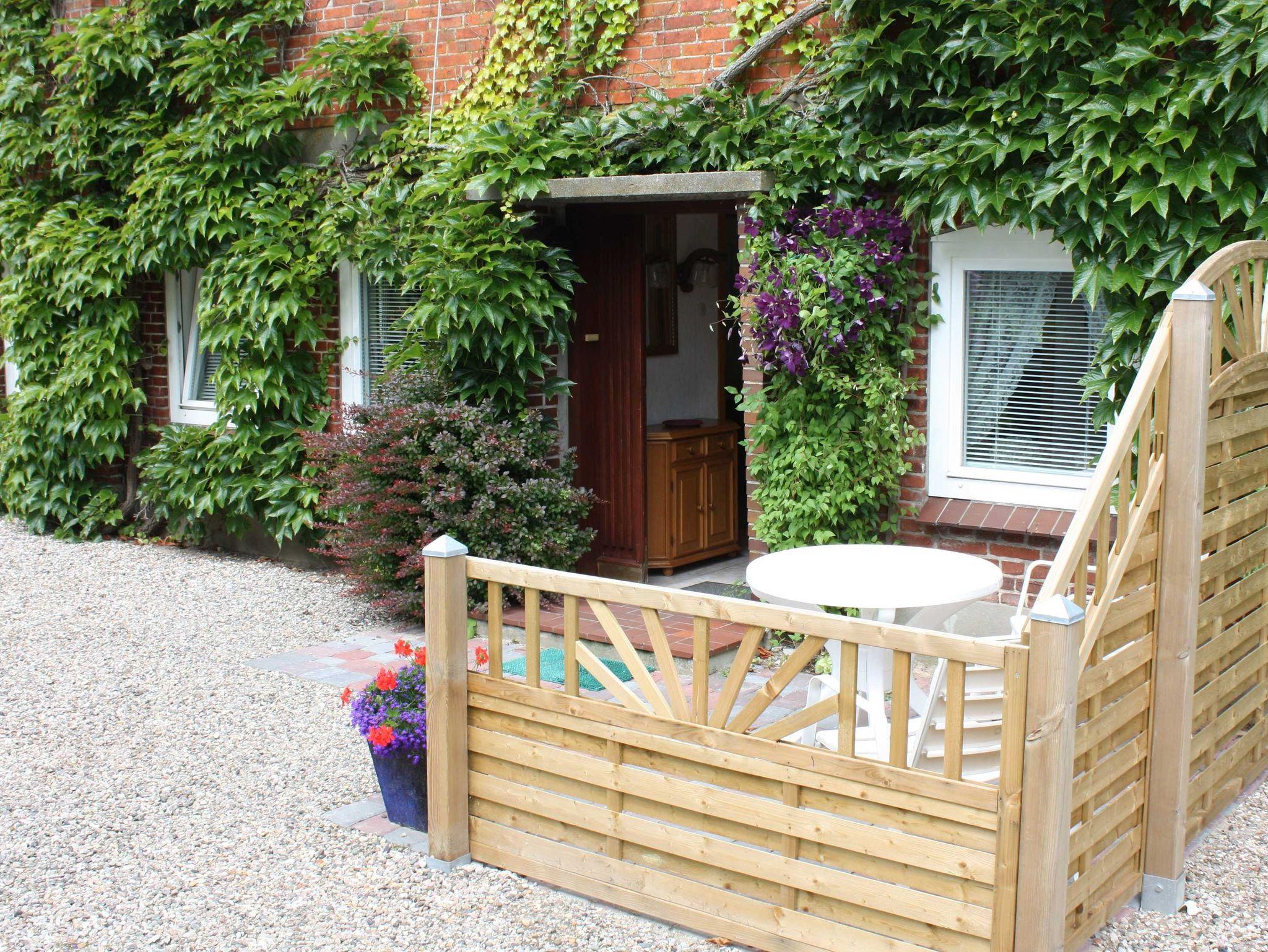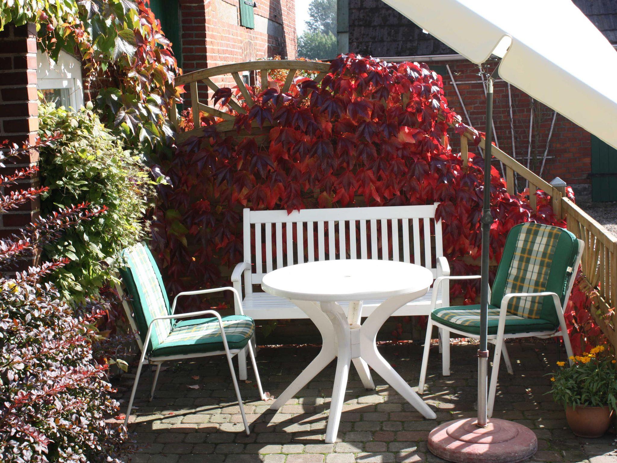 Die ebenerdige Ferienwohnung Heimathafen ist ansprechend, behaglich eingerichtet und verfügt über einen separaten Eingang. Hier befindet sich auch die Terrasse mit Gartenmöbeln.