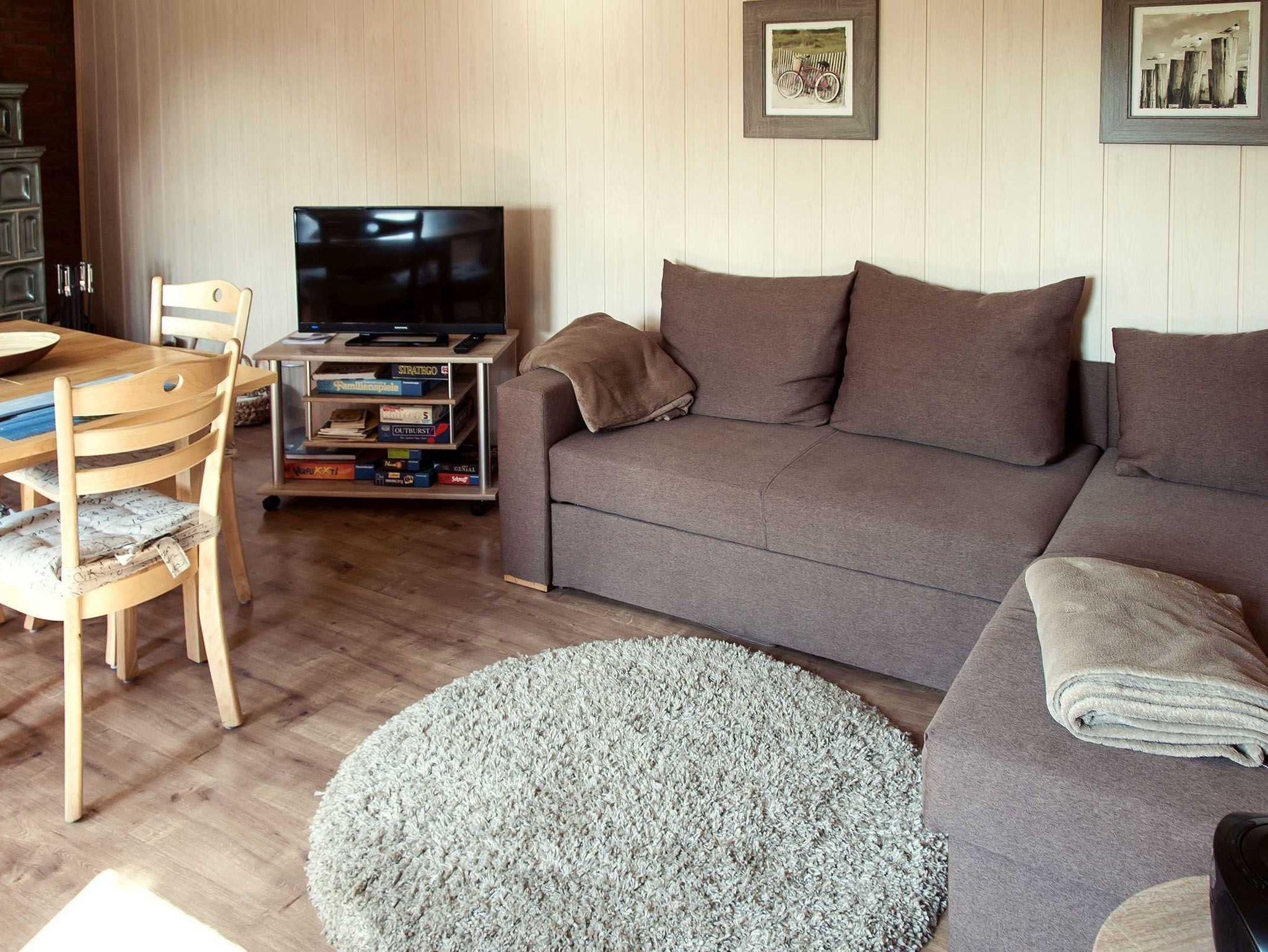 - Wohnraum mit Kachelofen, HD-TV, Radio mit CD-Player, div. Spiele und Sitzecke mit ausziehbarer Schlafcouch