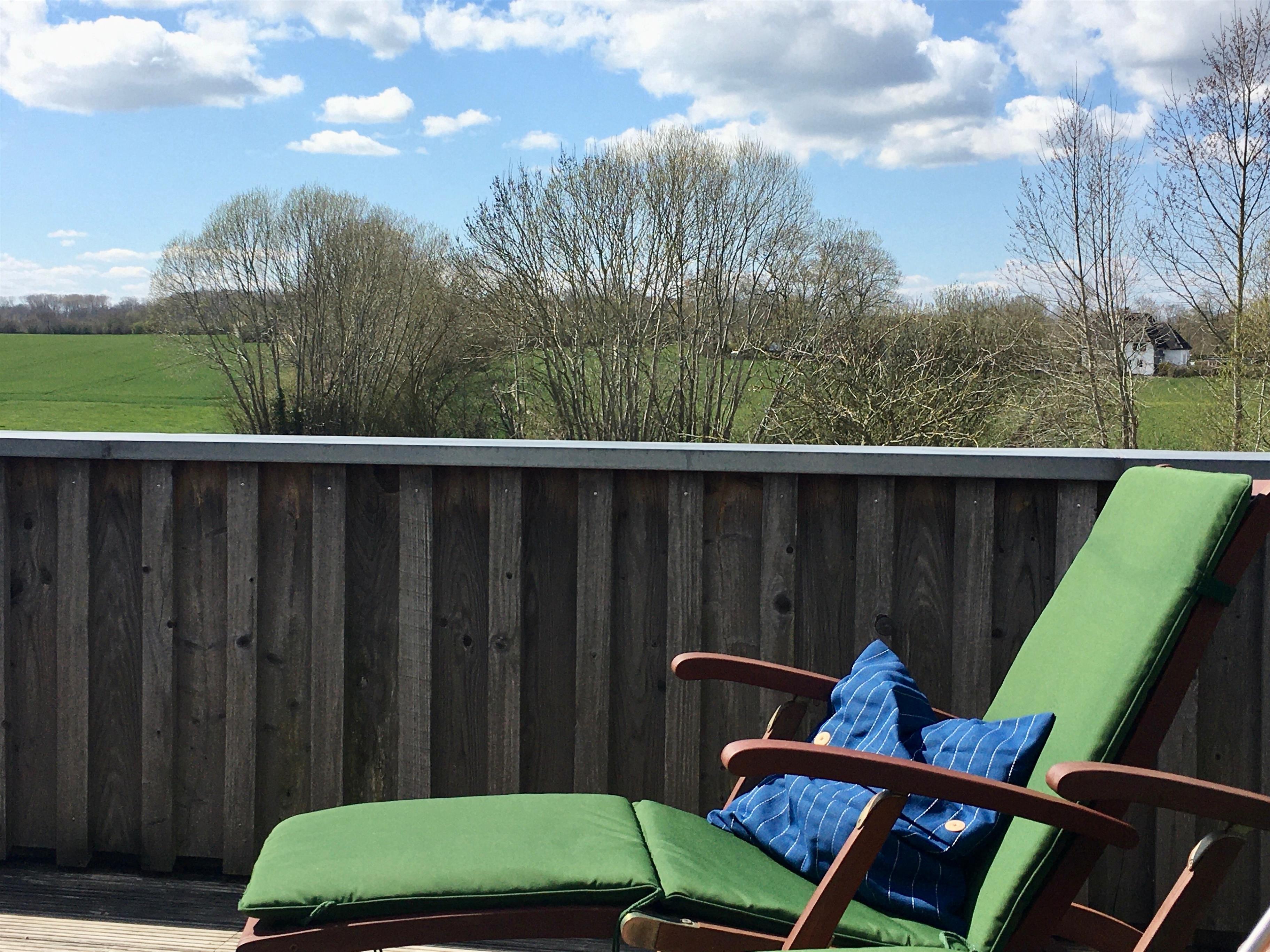 Die hell und komfortabel eingerichtete Ferienwohnung "Wolken" befindet sich im Obergeschoss des Plus Energiehauses, seitlich des Dreiseithofes.Die Wohnung ist etwa 96 qm groß und verfügt über zwei Schlafzimmer. Beide Schlafräume verfügen über neue metallfreie Biobetten in Extralänge (210cm). Die faire Biobettwäsche ist 150x220cm. Das barrierearme Bad hat einen große Familiendusche. Der große, helle Wohnraum verzaubert mit einem herrlichen Panoramablick über Wiesen und Felder. Die offene und gut ausgestattete Küche bietet einen Rundumblick ins Grüne. So lässt sich prima kochen.