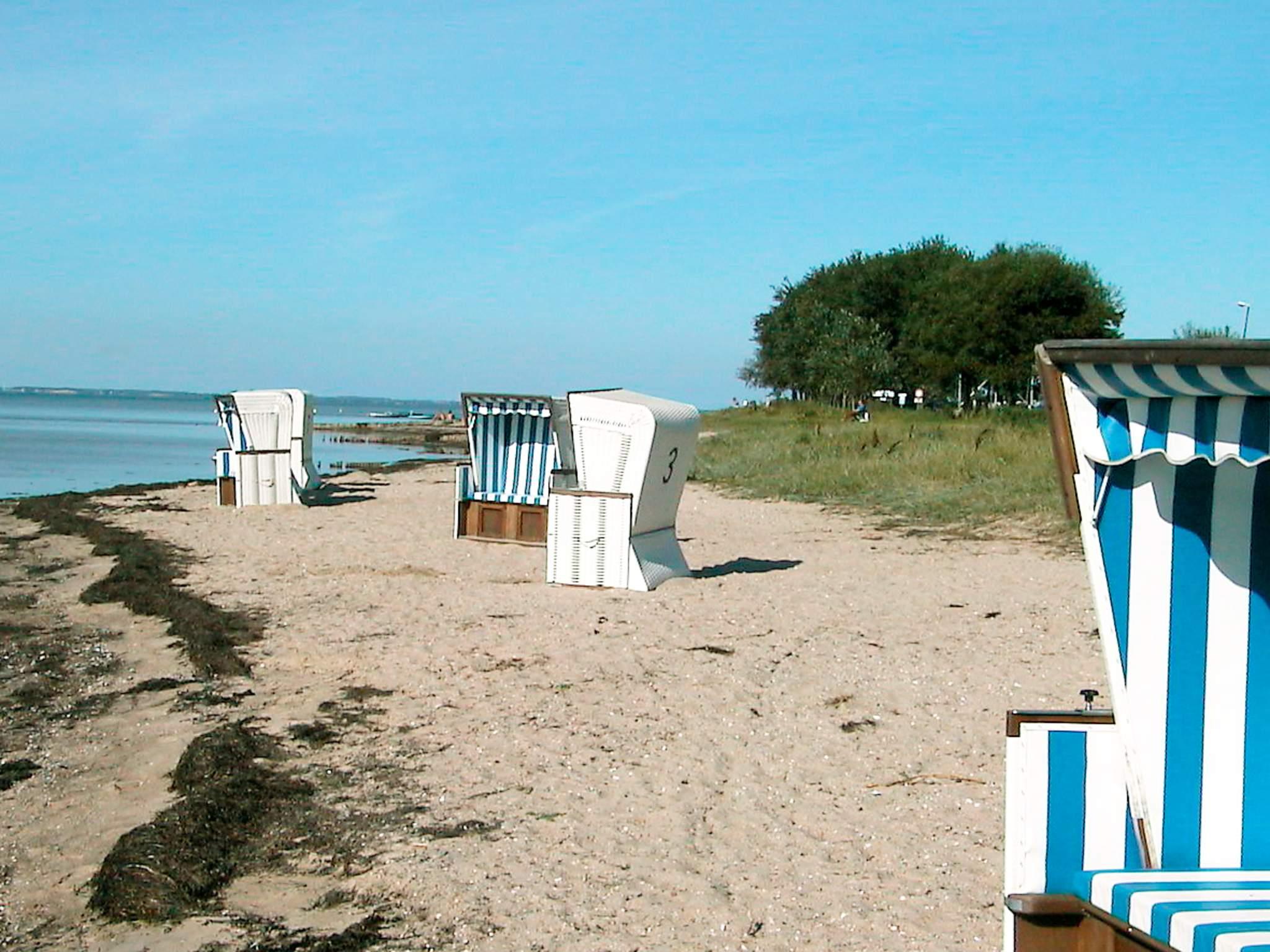 Komfortabelt sommerhus med sauna, beliggende få meter fra stranden ved bugten Geltinger Bucht. Fra huset er der delvis udsigt over havet. Huset er opført i moderne dansk stil, er udstyret med panoramavinduer, træbeklædte vægge og skrånende lofter og er moderne indrettet. Opholdsstuen indeholder bl.a. en brændeovn, et stereoanlæg med cd-afspiller og et tv med parabolantenne (ASTRA-modtagelse). 1 værelse er udstyret med dobbeltseng, 1 værelse rummer 2 enkeltsenge, og i opholdsstuen finder I en 2-personers sovesofa. Saunaen, som ligger i forbindelse med badeværelset, har plads til 4 personer. Fra stuen er der direkte adgang til en delvist overdækket terrasse.
