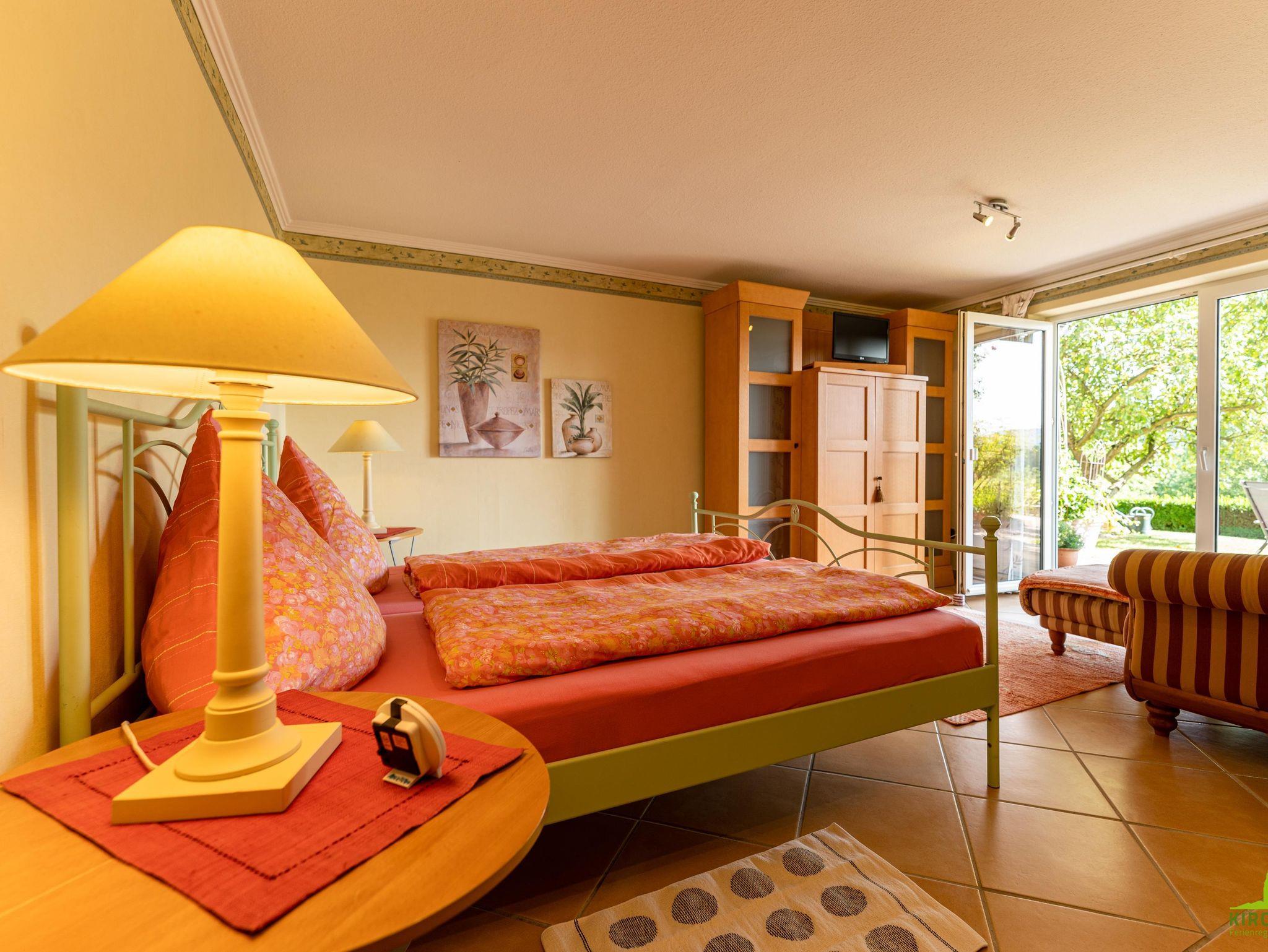 Komfortable 2-Zimmer-Ferienwohnung, Südhanglage, Wohn-/Esszimmer, mit separatem Schlafzimmer, (Schlafmöglichkeit für 3. Person im Wohnzimmer) Voll ausgestattete Küche, Wirtschaftsraum mit Waschmaschine, Wäschetrockner zur Alleinbenutzung, Geräumige Dusche/WC, Terasse + Garten zur Alleinbenutzung,kleiner Wintergarten für Regentage, Free WiFi, ab 1 Woche Aufenthalt erhalten Sie zur Begrüßung eine Flasche guten Nahe-Wein!