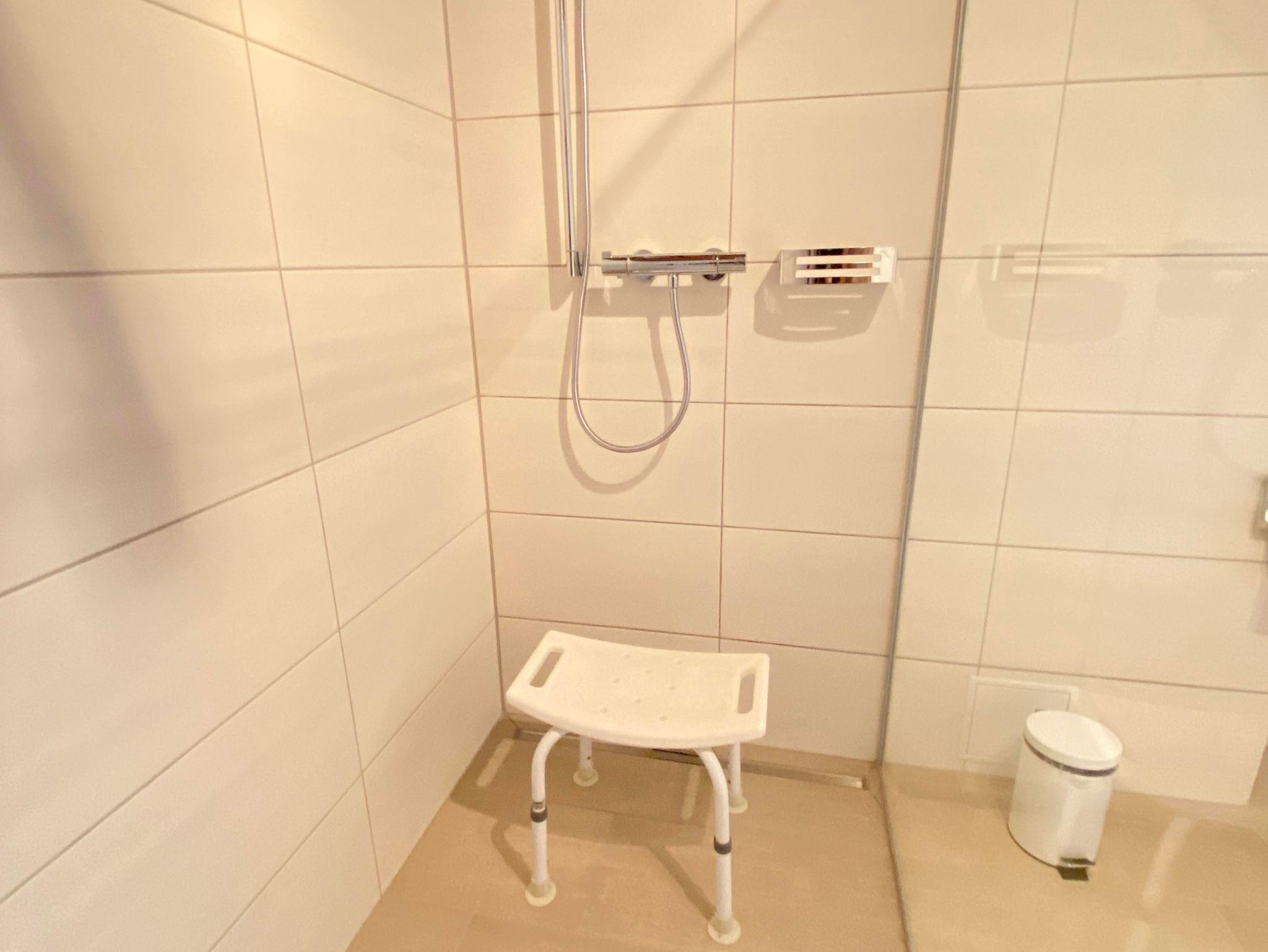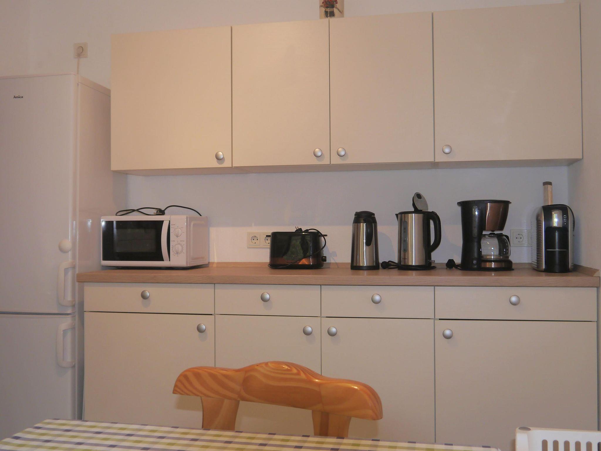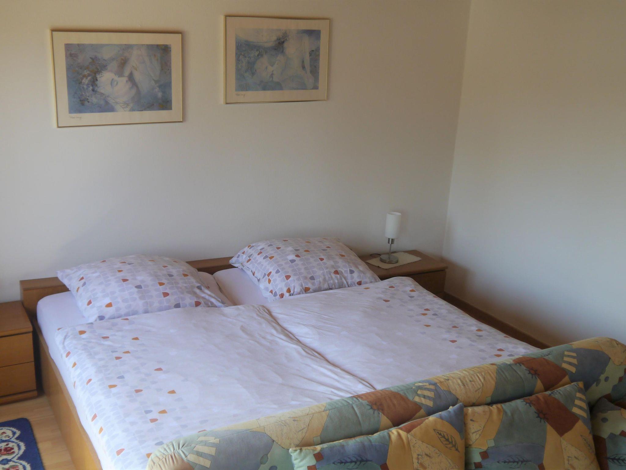 Das Appartement verfügt über zwei Doppelzimmer und ein Wohnzimmer mit windgeschütztem Südbalkon und tollem Blick auf die Brunnenstadt. Das Badezimmer verfügt über Dusche/WC.