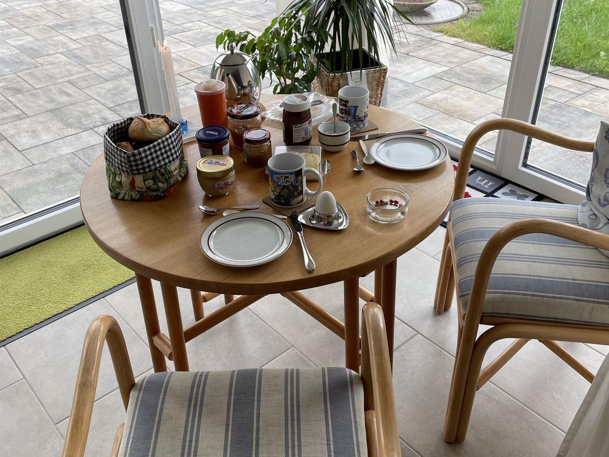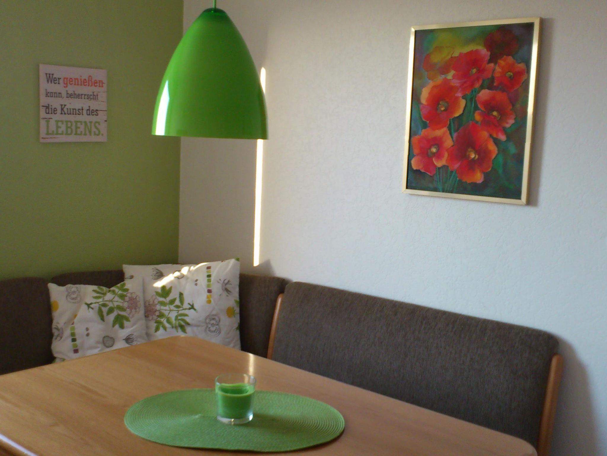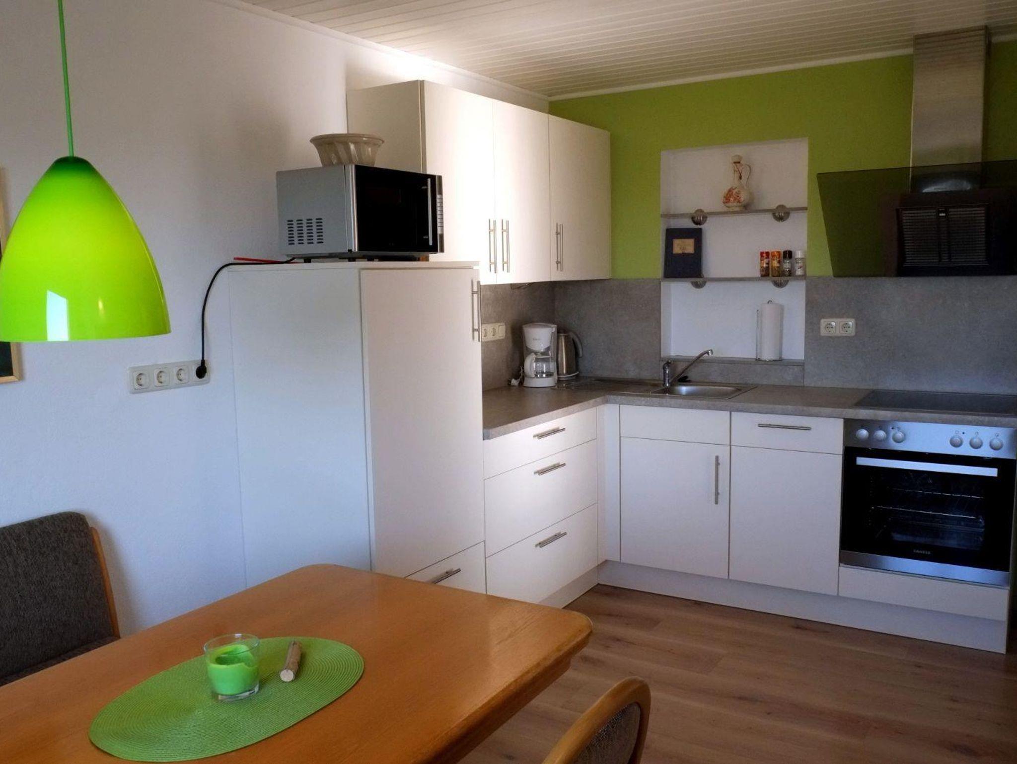 In der neu eingerichteten Küche mit Spülmaschine, Backofen, Mikrowelle und Gefrierfach befindet sich gleichzeitig die gemütliche Essecke, bestens geeignet für das gemeinsame Essen und/oder kurzweilige Spieleabende. Eine kleine Spieleauswahl finden Sie im Wohnzimmer. Im Wohnzimmer finden Sie auch einen Kaminofen, Holz zum Befeuern stellen wir auf Wunsch gegen Gebühr zur Verfügung, einen Sat-TV und eine Stereoanlage. Der Wintergarten grenzt unmittelbar an das Wohnzimmer und bietet Ihnen eine Weitsicht über Wiesen und Wald. Auf der Terrasse stehen Ihnen Gartenmöbel und ein Grill zur Verfügung. Das Schlafzimmer bietet Ihnen ein Doppelbett und einen begehbaren Kleiderschrank mit eingebautem Digital-Safe. Im geräumigen Bad befindet sich eine ebenerdige Dusche.