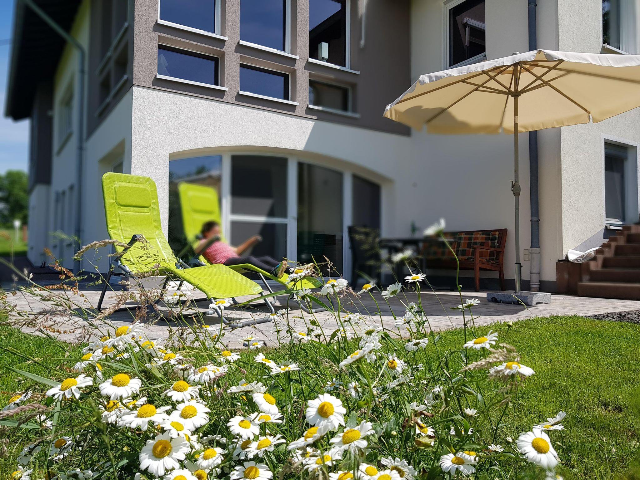 Die 65 qm große Nichtraucher-Ferienwohnung Wald und Wiese liegt im liebevoll renovierten Untergeschoss unseres Wohnhauses. Sie verfügt über einen eigenen ebenerdigen Eingang, eine Terrasse und einen PKW-Stellplatz.