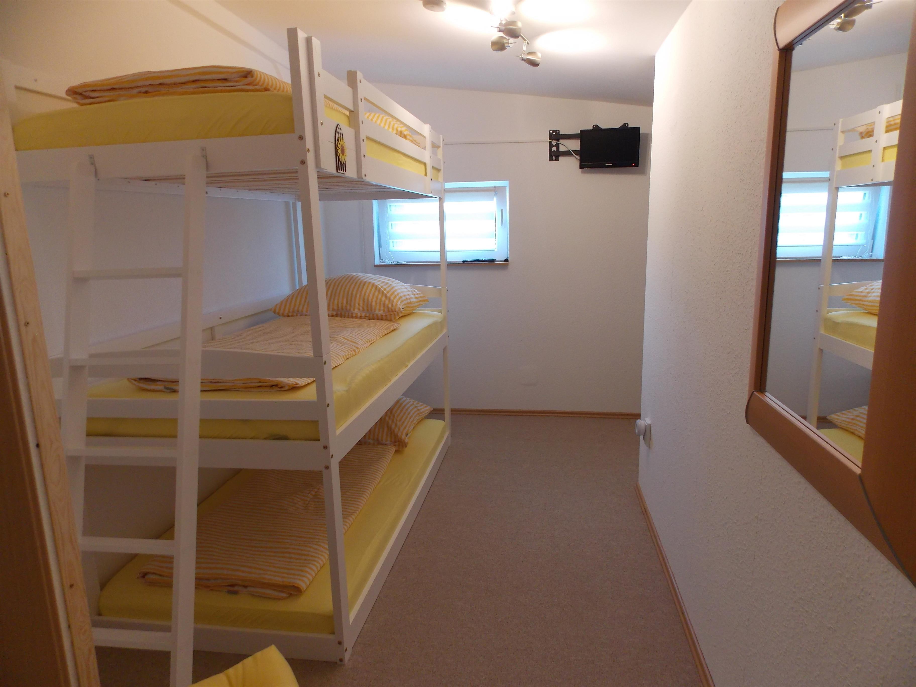 - Kleines Schlafzimmer mit Dreier-Stockbett