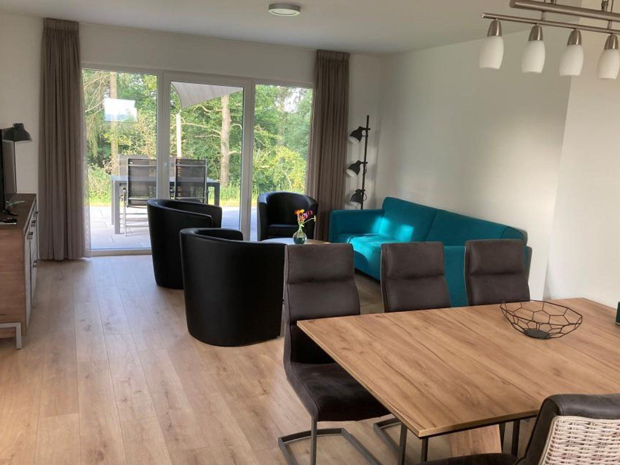 Das Wohnzimmer verfügt über eine Sitzecke mit einem geräumigen 2,5-Sitzer-Sofa, drei Sesseln, Flachbild-TV und einem großen Esstisch für 6 Personen. Für eine perfekte Temperatur im Haus ist das gesamte Haus mit einer Fußbodenheizung ausgestattet. Der Essbereich verfügt über einen geräumigen Esstisch mit 6 Stühlen, an dem Sie eine köstliche Mahlzeit genießen können. Die Terrasse ist durch die Terrassentüren zugänglich. Auf der Terrasse steht ein Esstisch und 6 Stühle.