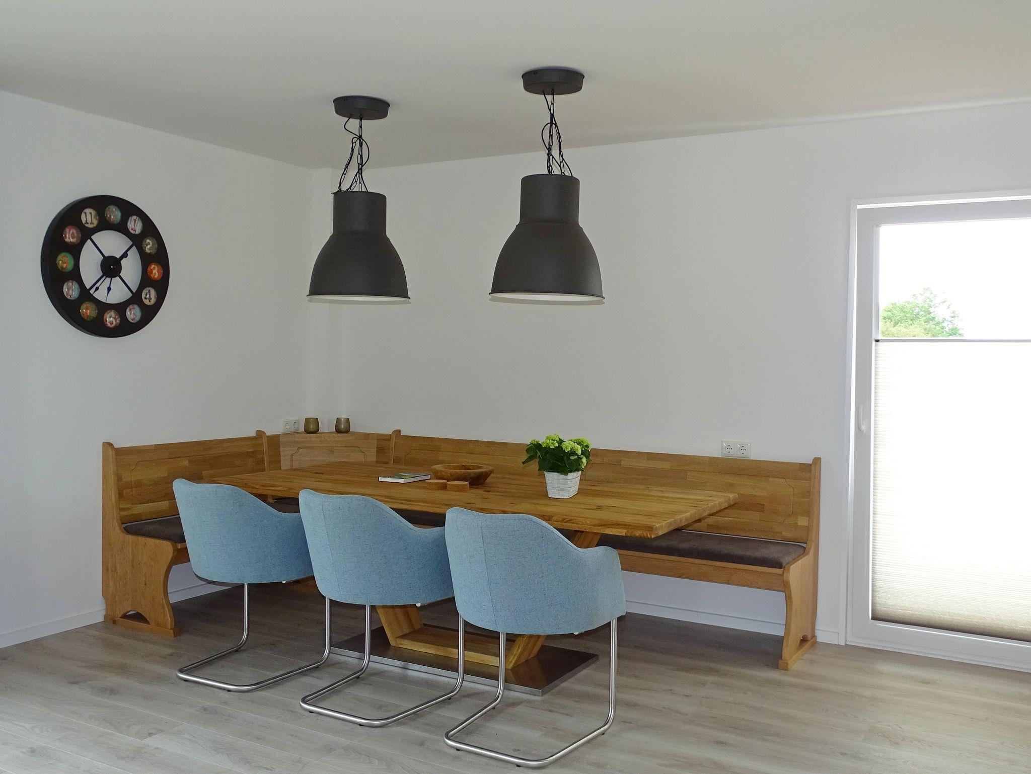 Das Wohnzimmer verfügt über eine Sitzecke mit einem großzügigen 7-Personen-Ecksofa, drei schönen zusätzlichen Stühlen, Breitbild-TV und einem großzügigen Essbereich mit großem Esstisch für die ganze Familie.