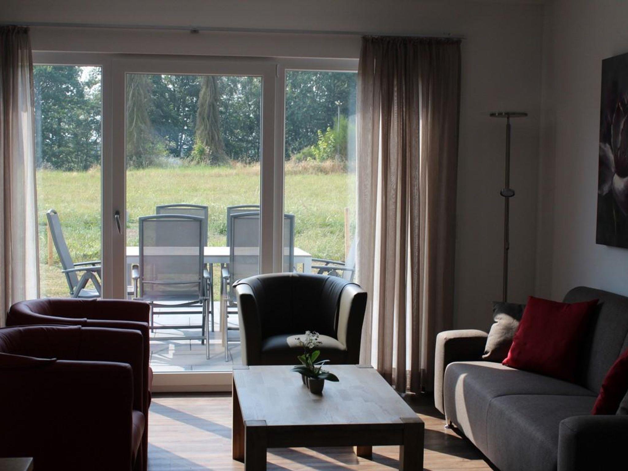 Das Wohnzimmer verfügt über eine Sitzecke mit einem geräumigen 2,5-Sitzer-Sofa, drei Sesseln, Flachbild-TV und einem großen Esstisch für 6 Personen. Für eine perfekte Temperatur im Haus ist das gesamte Haus mit einer Fußbodenheizung ausgestattet. Der Essbereich verfügt über einen geräumigen Esstisch mit 6 Stühlen, an dem Sie eine köstliche Mahlzeit genießen können. Die Terrasse ist durch die Terrassentüren zugänglich. Auf der Terrasse steht ein Esstisch und 6 Stühle.
