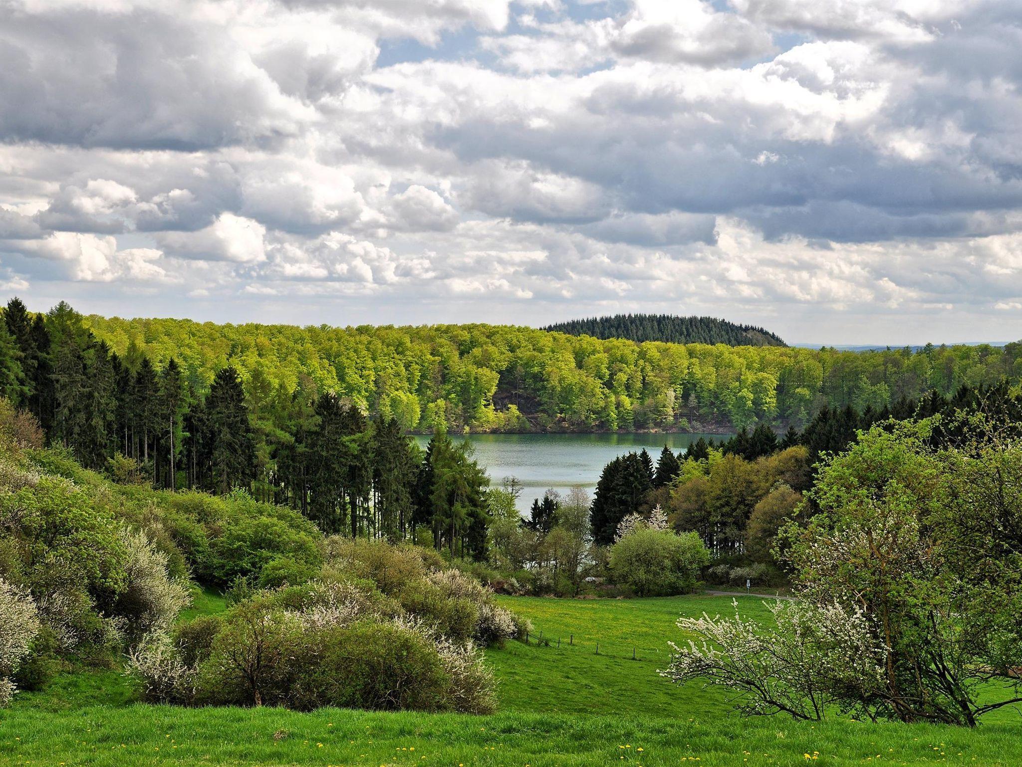 Das Ferienhaus ist sehr nachhaltig mit Brettsperrholz und einer Luft-Wasser-Wärmepumpe in einer wunderschönen natürlichen Umgebung gebaut. Und bietet einen einzigartigen Blick auf die hügelige Eifel und liegt direkt am schönen Pulvermaar in Gillenfeld, wo viele Wander- und Radwege beginnen. Genießen Sie die weiten Hügel, dichte Wälder, klare Bäche, duftende Wiesen und schöne Dörfer.