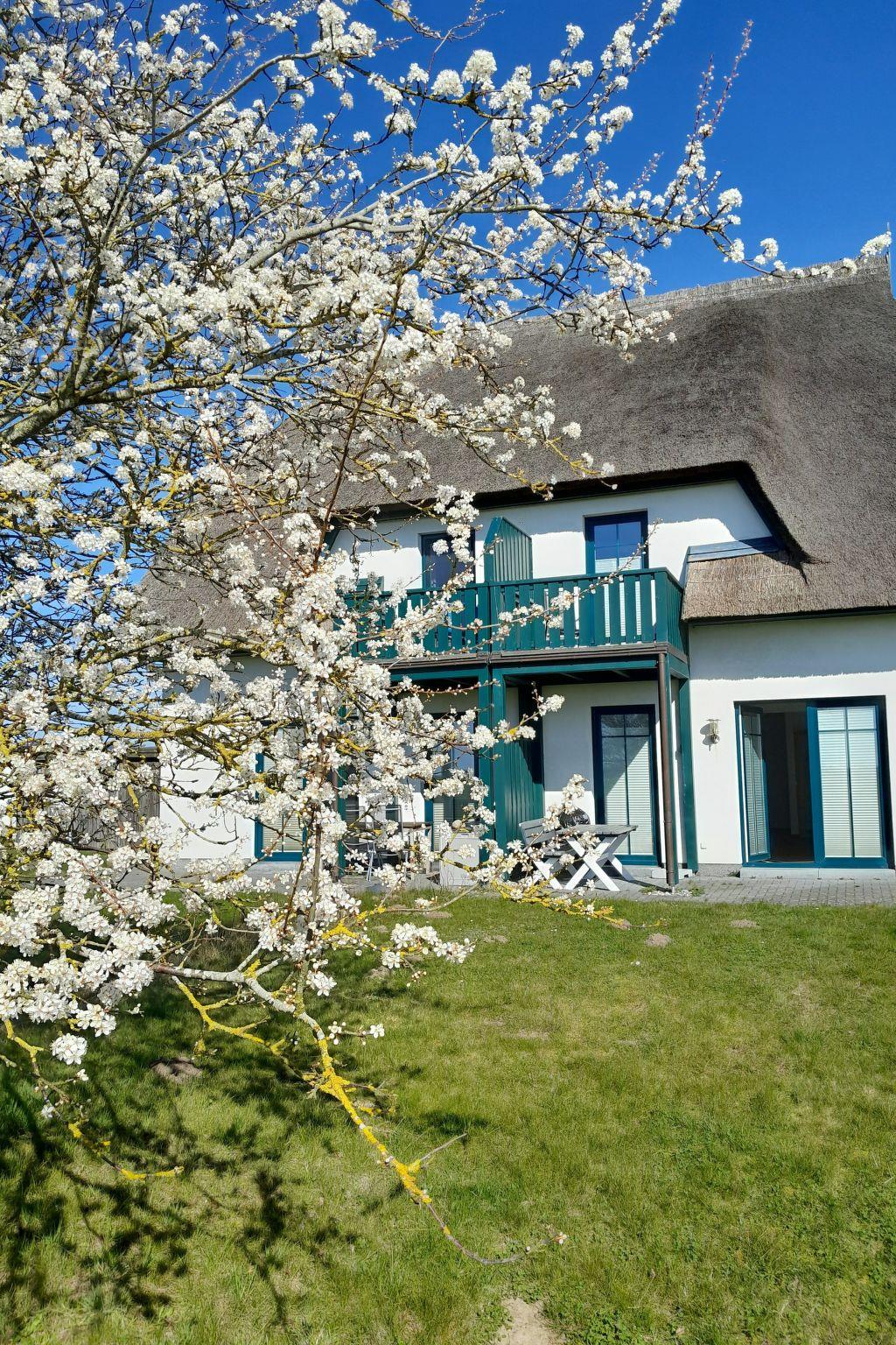 Discover the thatched semi-detached house Villa "Seeschwalbe" for pure relaxation on Rügen. In a picturesque location in the "Vorpommersche Boddenlandschaft" National Park, just 400 metres from the Bodden, it offers an idyllic retreat. If you want to get away from the fine Baltic Sea sand, you will find a charming bathing spot here. The house, with its bright south-facing position, offers a spacious, undisturbed view over fields and meadows and welcomes you and your four-legged friend.