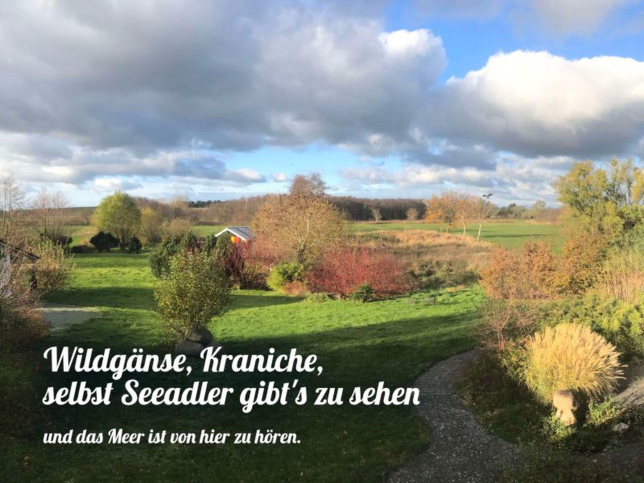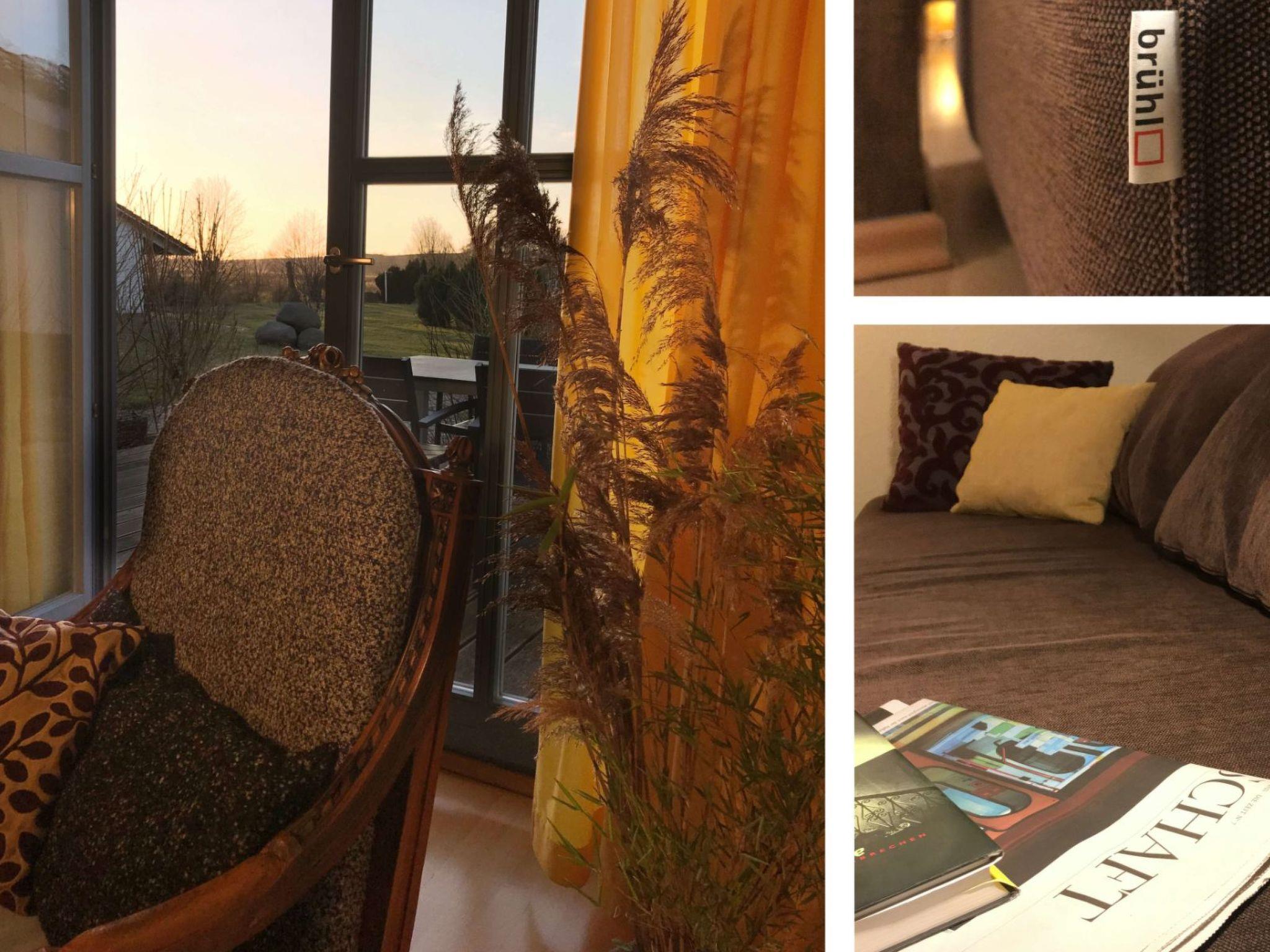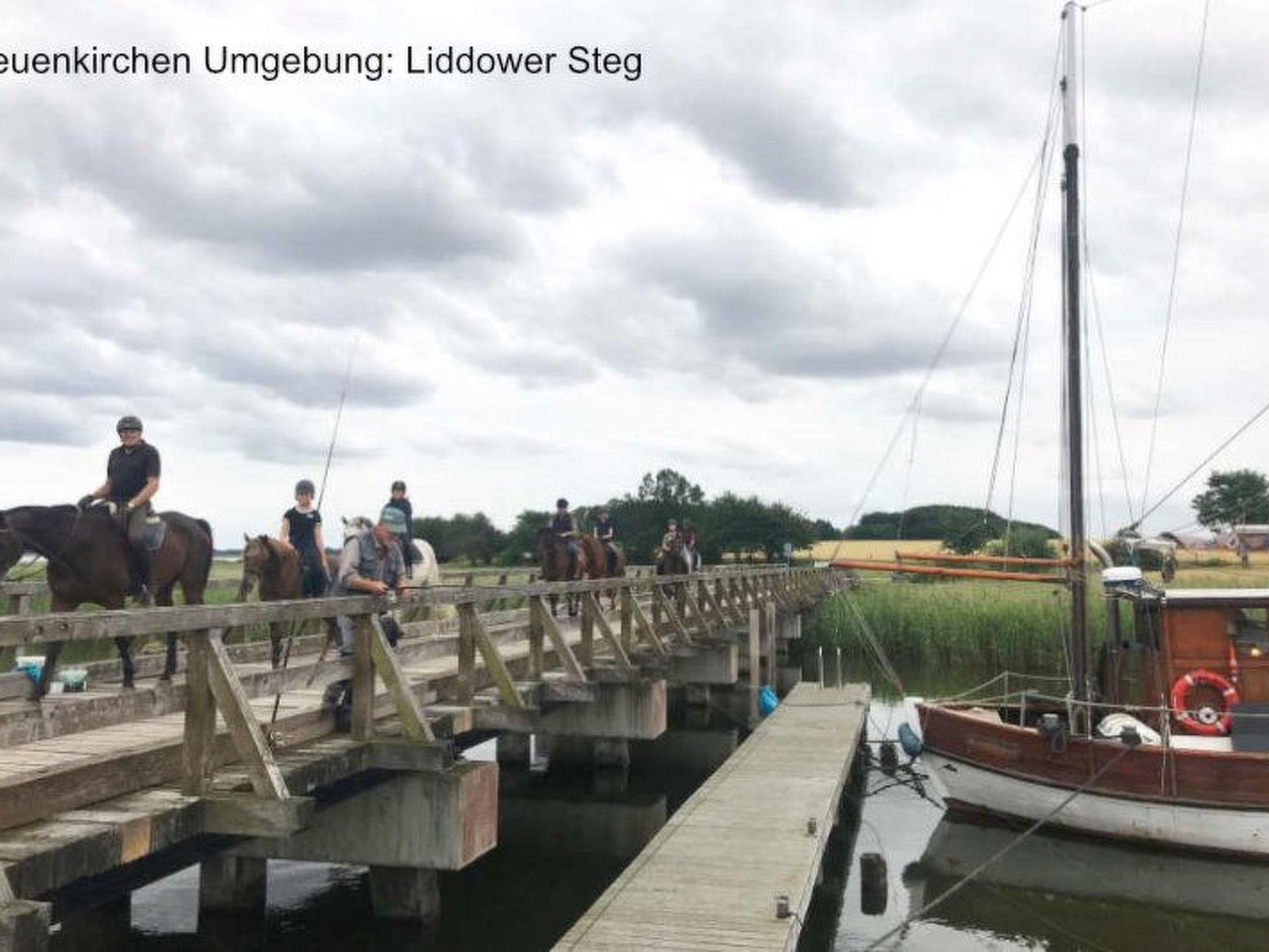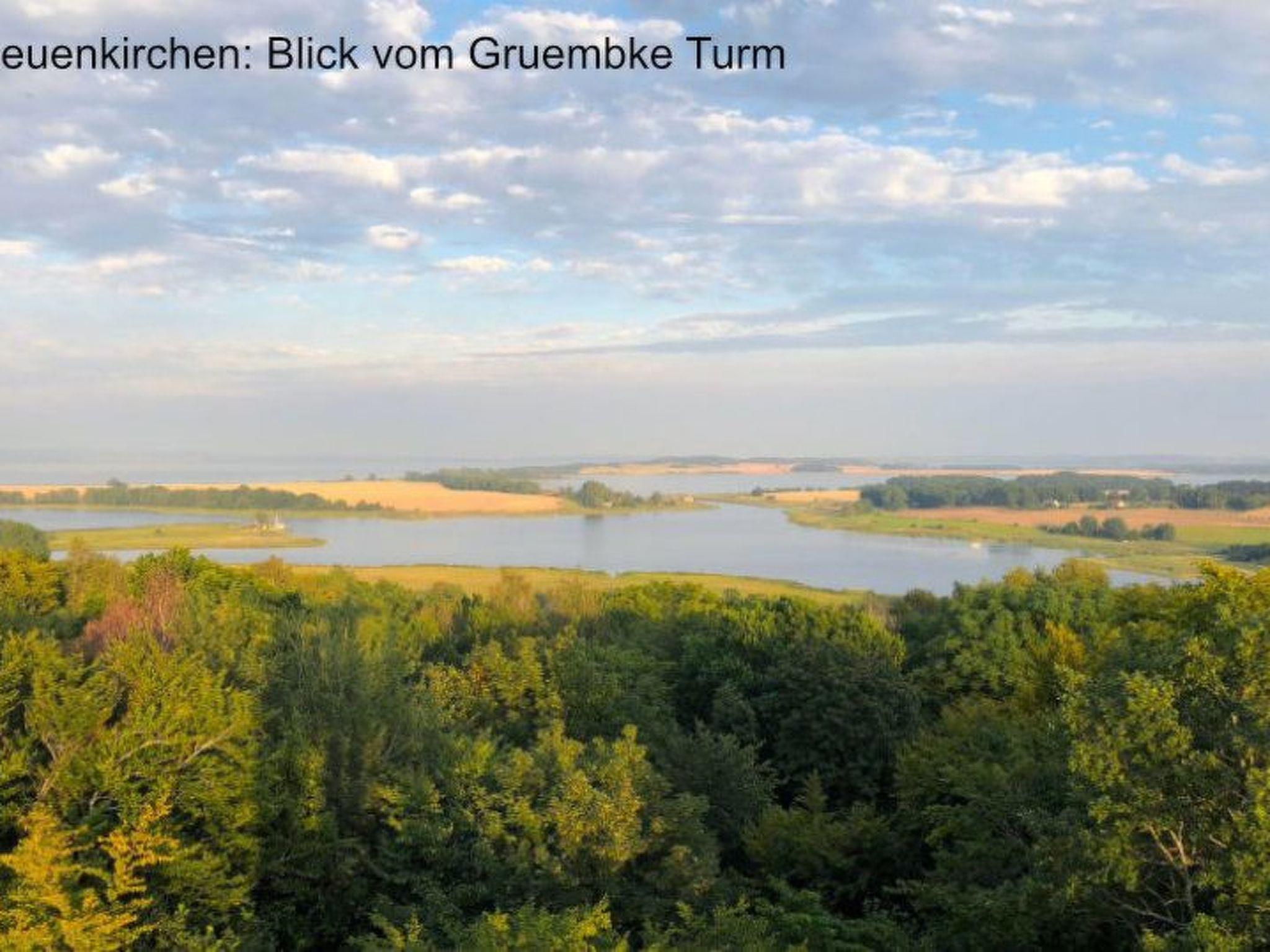 If you don't want to cook for yourself, the excellent cuisine (Mediterranean-influenced, German) of the "Wirtshaus Neuenkirchen" also provides culinary relaxation. For your daily needs, shopping in the grocery shop (bread rolls except Sunday) diagonally opposite is like travelling back in time to an ideal world. Both are about 50 metres away. The best place to buy delicious steaks is the "Wild und Rind" farm shop at the beginning of the village street. Also within walking distance is the small, pretty sandy beach for splashing around or cooling off in the Lebbiner Bodden in the evening, approx. 20 minutes directly on the former backdrop of the seal station of "Hallo Robbie". You are unlikely to see seals here, but you will find clean Bodden water, as depending on the weather, there is a strong exchange of water between the Baltic Sea and the Bodden. The local mountain of Neuenkirchen is the "Hoch Hilgor". Hike approx. 25 minutes from the holiday resort. From the observation tower you have a fantastic panoramic view of the island and, on a clear day, as far as Denmark and Møns Klint.