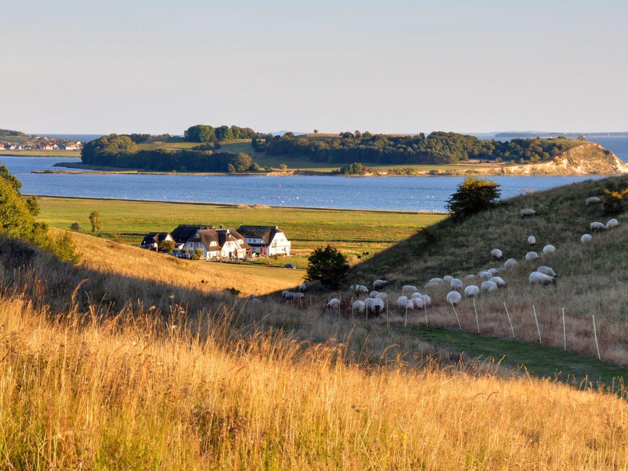 Enjoy walks along the bodden waters just 200 metres away or the sunset over the island Hiddensee from the balcony or the gallery, with a glass of wine. A holiday in harmony with nature. The largest and most beautiful beach on the island of Rügen, Schaabe, is just 12km away. It is 500 metres to the bodden with a grass beach, where you can fish with a permit. You can also enjoy kite surfing on the booden. The guesthouse Fähr-Eck in Trent offers homemade ice cream. In Schaprode in Schillings guesthouse, there is beef on the menu from the neighbouring island Öhe. Next door in the farm shop you can buy bread rolls and opposite there is the Eishafen with some exceptional sorts of ice cream. The ferry pier is right nearby, with ferries towards Hiddensee. In Schaprode there is a little beach by the campsite, the most beautiful and largest beach on Rügen called Schaabe, which can be accessed with the Wittow ferry.