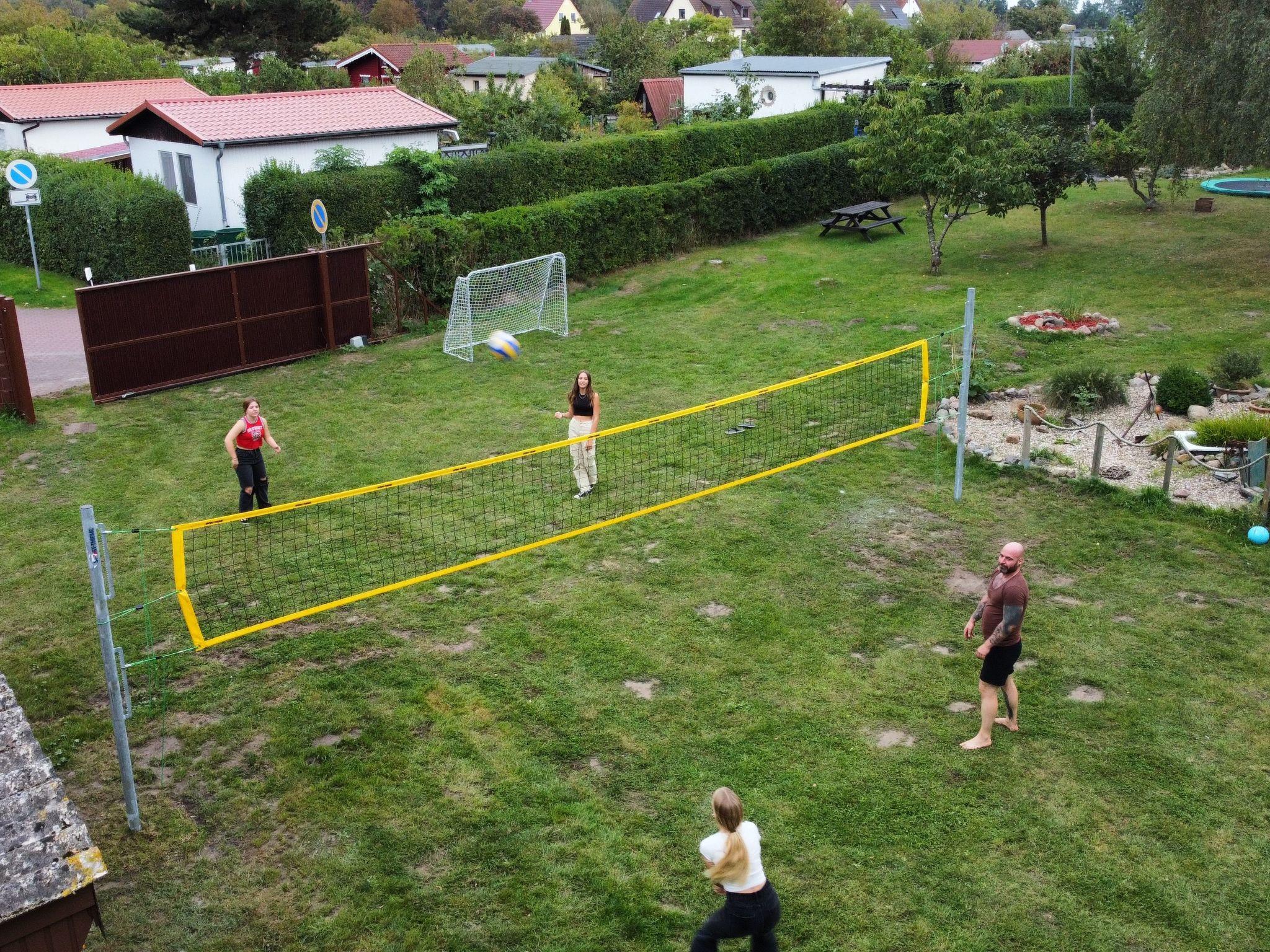 The grounds of the Rügen holiday home offer a wide range of leisure activities. Among other things, we have a volleyball net and a football goal. You can also play table tennis or simply relax on our large terrace or on one of the sun loungers. There is also a trampoline and swings, and even a sandpit for the little ones.