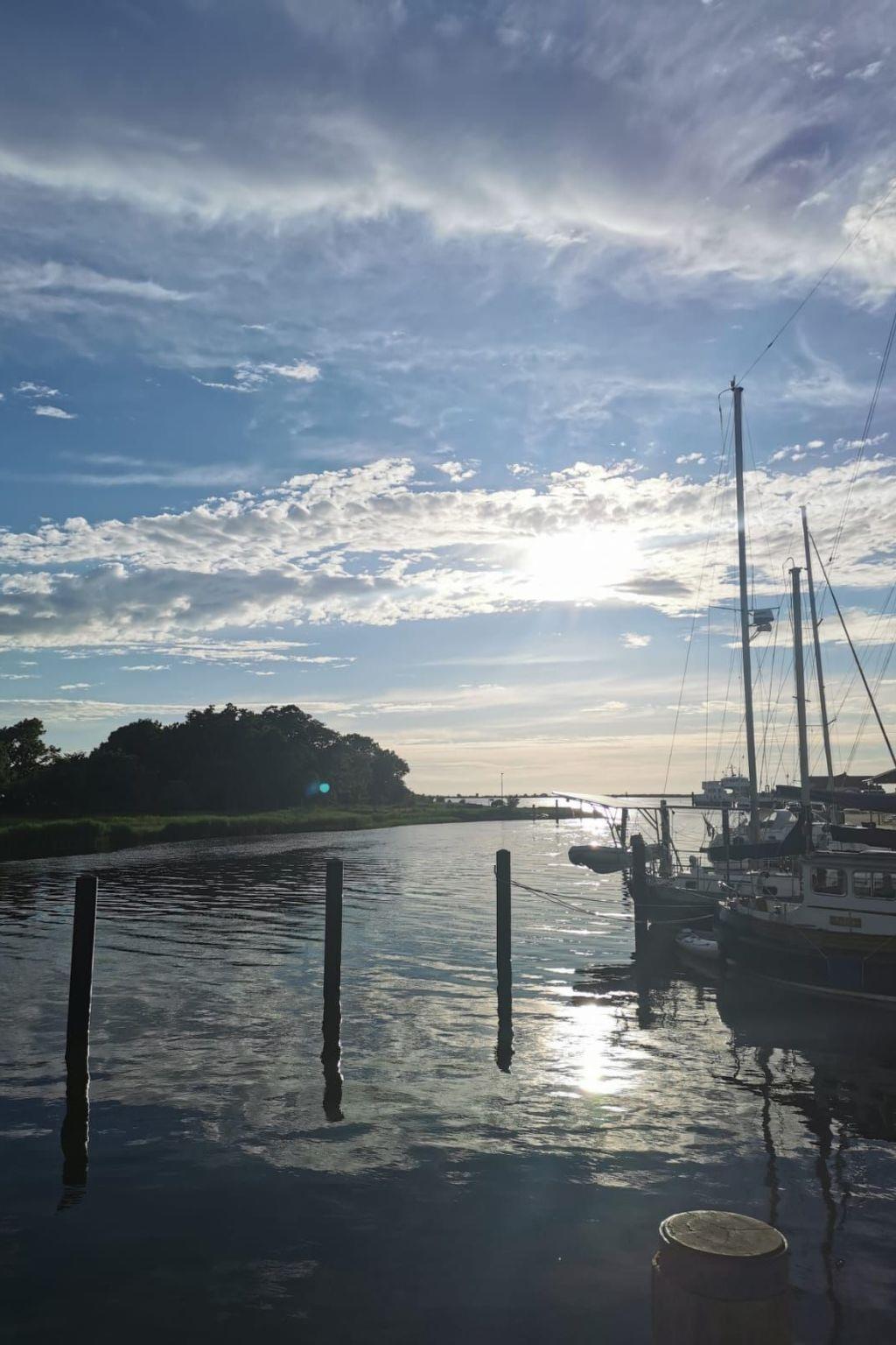 Outside, a terrace directly behind the house awaits you, equipped with barbecue and seating - perfect for enjoying the mild evenings outdoors. There is also a table and bench combination in front of the house, where you can watch the hustle and bustle of the nearby harbour over a coffee. The garden for communal use rounds off the offer and provides space for relaxing hours in the open air.