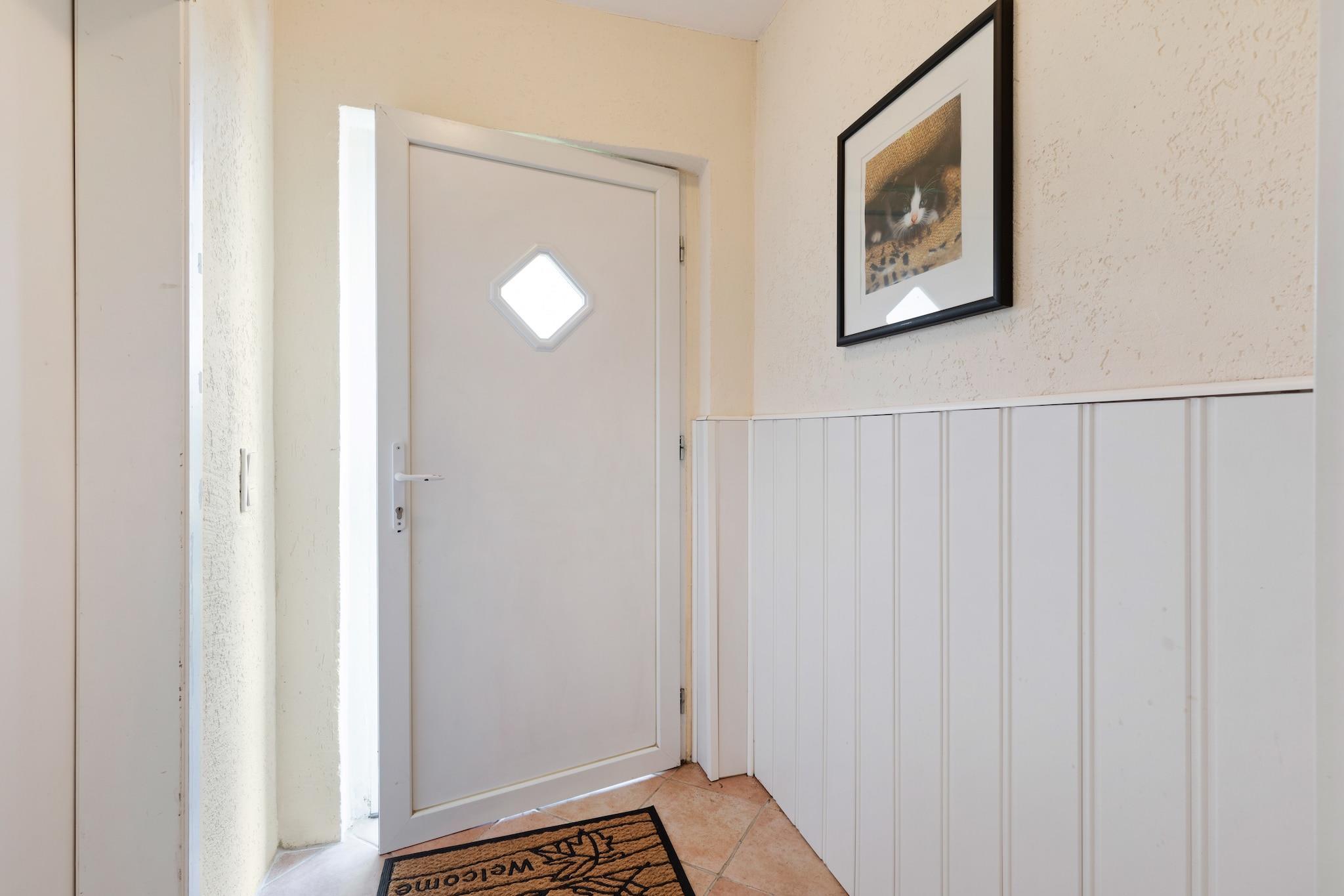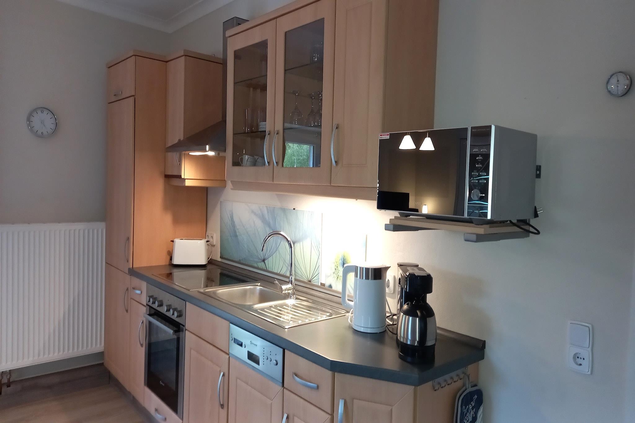 Beliggende kun 800 meter fra havets strand, inviterer dette indbydende tilflugtssted i stueetagen i Gingst gæster (og deres kæledyr!) til at slappe af i komfort omgivet af natur og kystlinjecharme. Den rummelige stue/spisestue har en dobbelt sovesofa, pejs, satellit-tv, dvd- og cd-afspillere - perfekt til hyggelige aftener eller afslappet afslapning. Det fuldt udstyrede køkken omfatter en kaffemaskine, mikroovn, brødrister, køleskab med fryser og opvaskemaskine, hvilket gør selvforplejning ubesværet. Nyd hjemmelavede måltider ved spisebordet eller udenfor på den møblerede terrasse eller terrasse. Dobbeltværelset lover afslappende nætter, mens det moderne badeværelse er udstyret med bruser, toilet, hårtørrer og det mest nødvendige. Træd ud i din private 100 m² store have, komplet med BBQ-grill, liggestole, parasol og festspil – ideel til sommerhygge eller afslappede eftermiddage. Med parkering på stedet, et strygebræt og endda radio for stemning, udgør denne ejendom en praktisk, men charmerende base for par, små familier eller naturelskende rejsende.