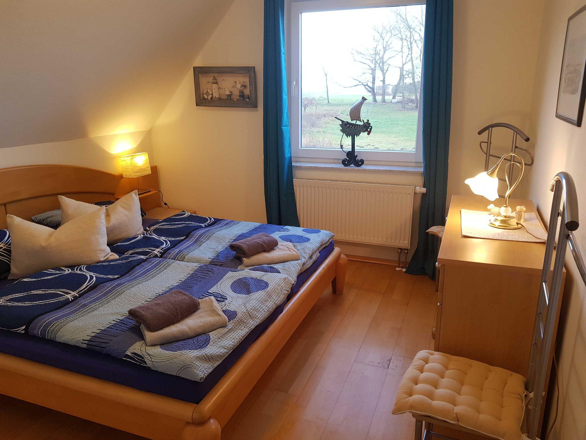Von beiden Schlafzimmern aus haben Sie einen herrlichen unverbauten Boddenblick über die Insel Ummanz bis hin zur Insel Hiddensee. Nachts kann man in der Ferne den Leuchtturm auf Hiddensee blinken sehen.