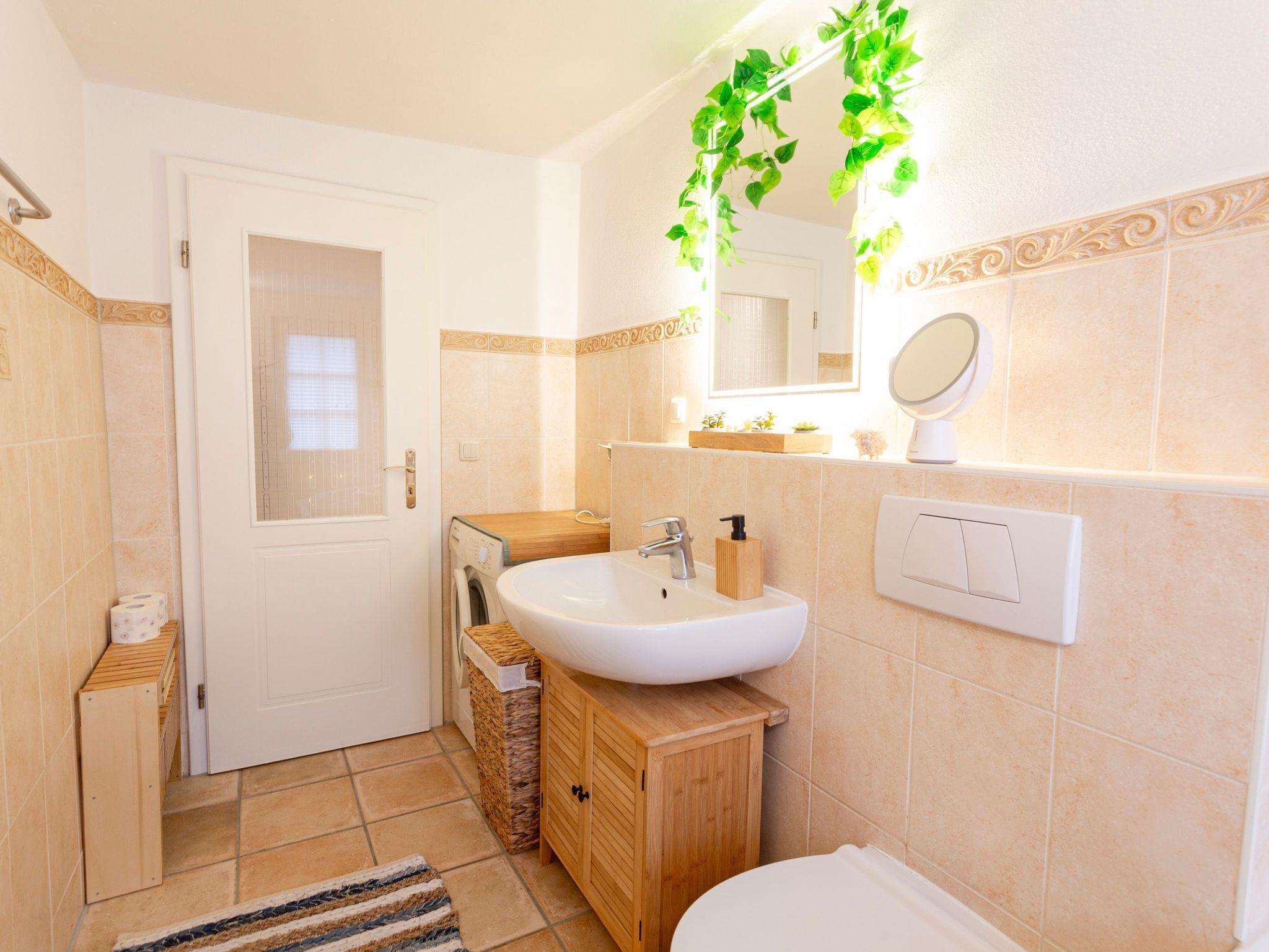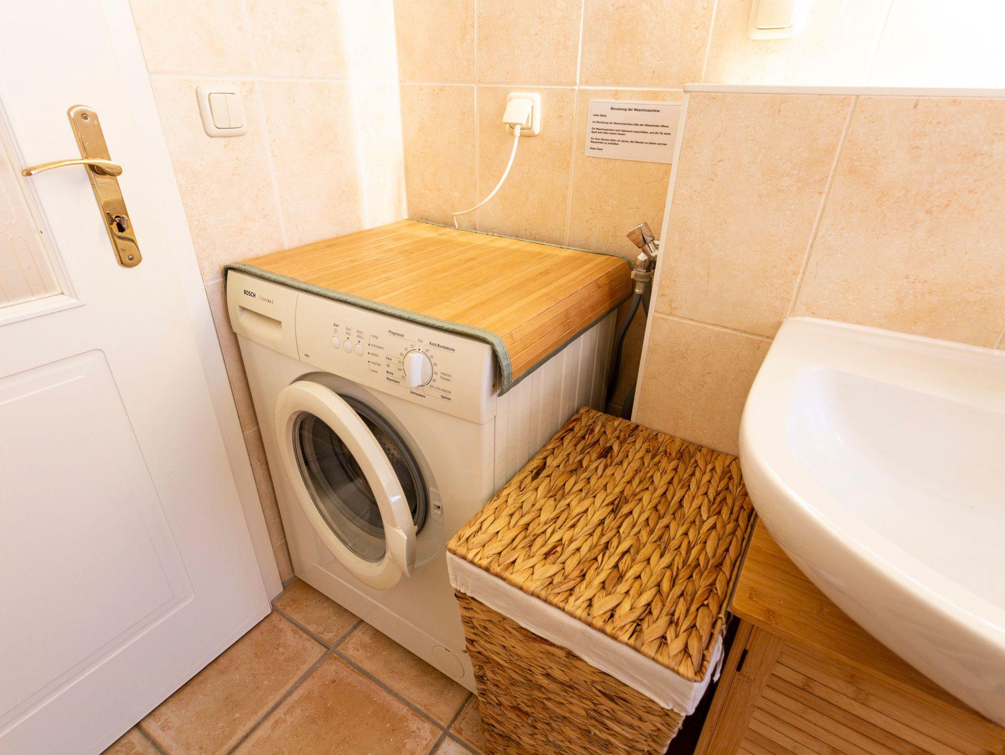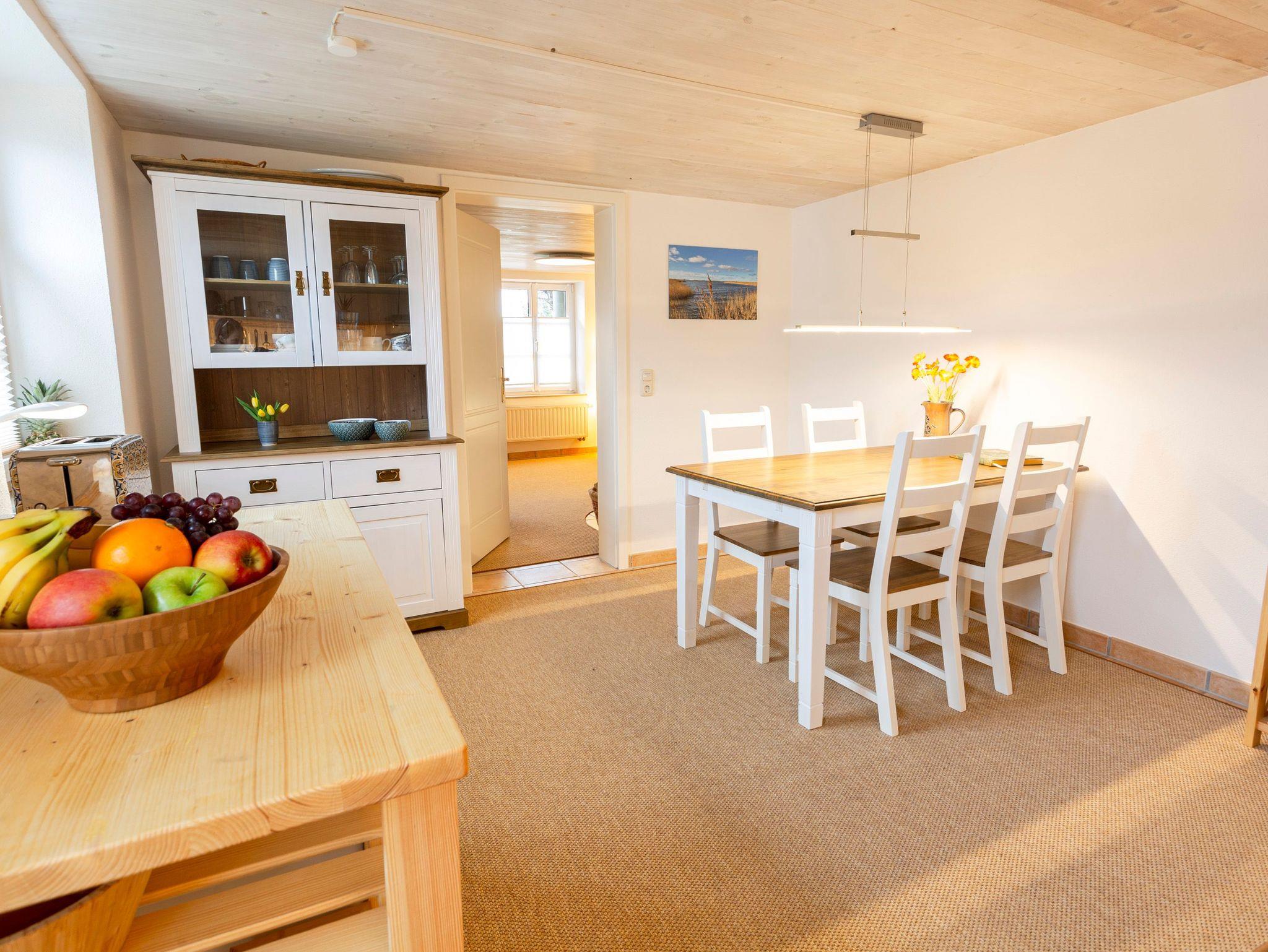 Die Ferienwohnung 3 im Haus Klein Kapelle befindet sich im Erdgeschoss des Hauses und bietet auf 57 m² genügend Platz für bis zu 4 Personen und einem Baby. Das Wohnzimmer verfügt neben einem Schlafsofa (150x210) und einem großen TV über einen modernen Kamin, der angenehme Wärme an kalten Abenden spendet. Das Schlafzimmer schließt sich an das Wohnzimmer und bietet ein Doppelbett (160x200) und ein Einzelbett (70x175) für erholsame Nächte. Die geräumige Küche lädt zum Kochen und gemeinsamen Genießen ein. Im Zentrum steht der große Esstisch und rund herum befindet sich die voll ausgestattete Küche im Landhausstil. Kochen sie ganz wie zu Hause, dafür stehen ihnen Herd, Backofen, Kühlschrank, Geschirrspüler und Mikrowelle zur Verfügung. Die kleinen Küchenhelfer des Alltags, wie Kaffeemaschine, Toaster, Wasserkocher und Milchaufschäumer befinden sich ebenfalls in der Küche. Das Bad ist mit einer Badewanne, WC, Waschbecken und einer Waschmaschine ausgestattet.