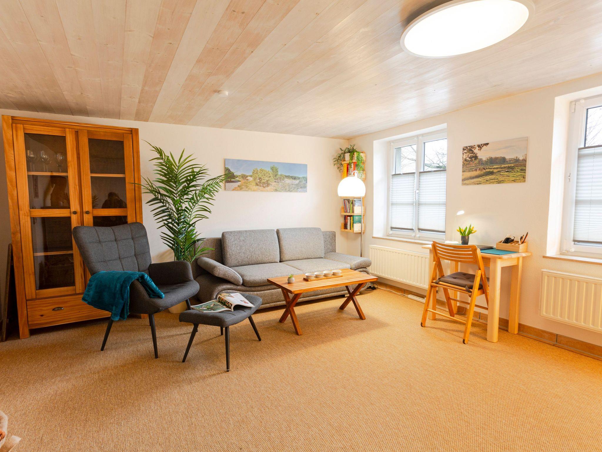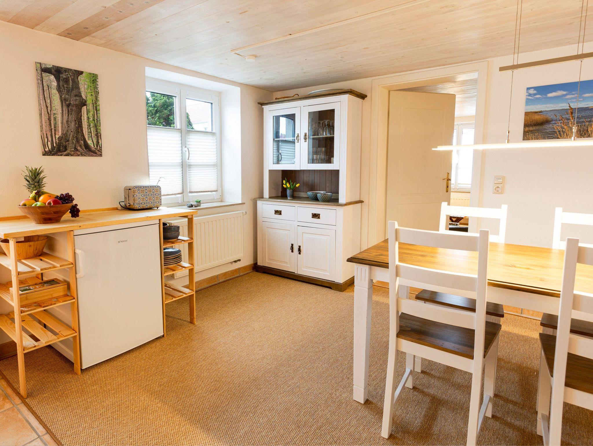 Die Ferienwohnungen im Haus Klein Kapelle befinden sich in Gingst auf der Insel Rügen und sind über einen eigenen separaten Eingang im Erdgeschoss erreichbar. Die Ferienwohnung 2 erstreckt sich über 2 Etagen und ist für bis zu 6 Personen geeignet. Sie bietet ein offenes Raumkonzept mit 3 Schlafnischen, großem Wohnbereich und voll ausgestatteter Küche. Die beiden Badezimmer sind mit Dusche und Badewanne ausgestattet. Das Haus Klein Kapelle ist über 200 Jahre alt und hat aufgrund der Balkenstruktur an wenigen Stellen im Dachgeschoss eine Stehhöhe von 1,80m. Die Ferienwohnung 3 im Erdgeschoss des Hauses ist für bis zu 4 Personen und ein Baby ausgelegt. Neben einem gemütlichen Wohnzimmer mit Kamin, einem separaten Schlafzimmer und einer voll ausgestatteten Küche steht ein Badezimmer mit Badewanne, WC und Waschmaschine zur Verfügung. Als Highlight kann hier die separate Sauna hinzugebucht werden.