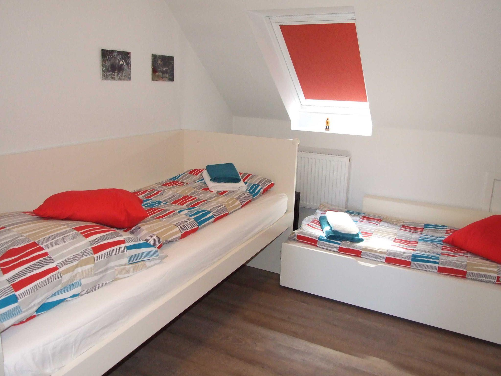 • Schlafzimmer mit zwei großen Einzelbetten (100*200), einer Sitzecke und großem Kleiderschrank